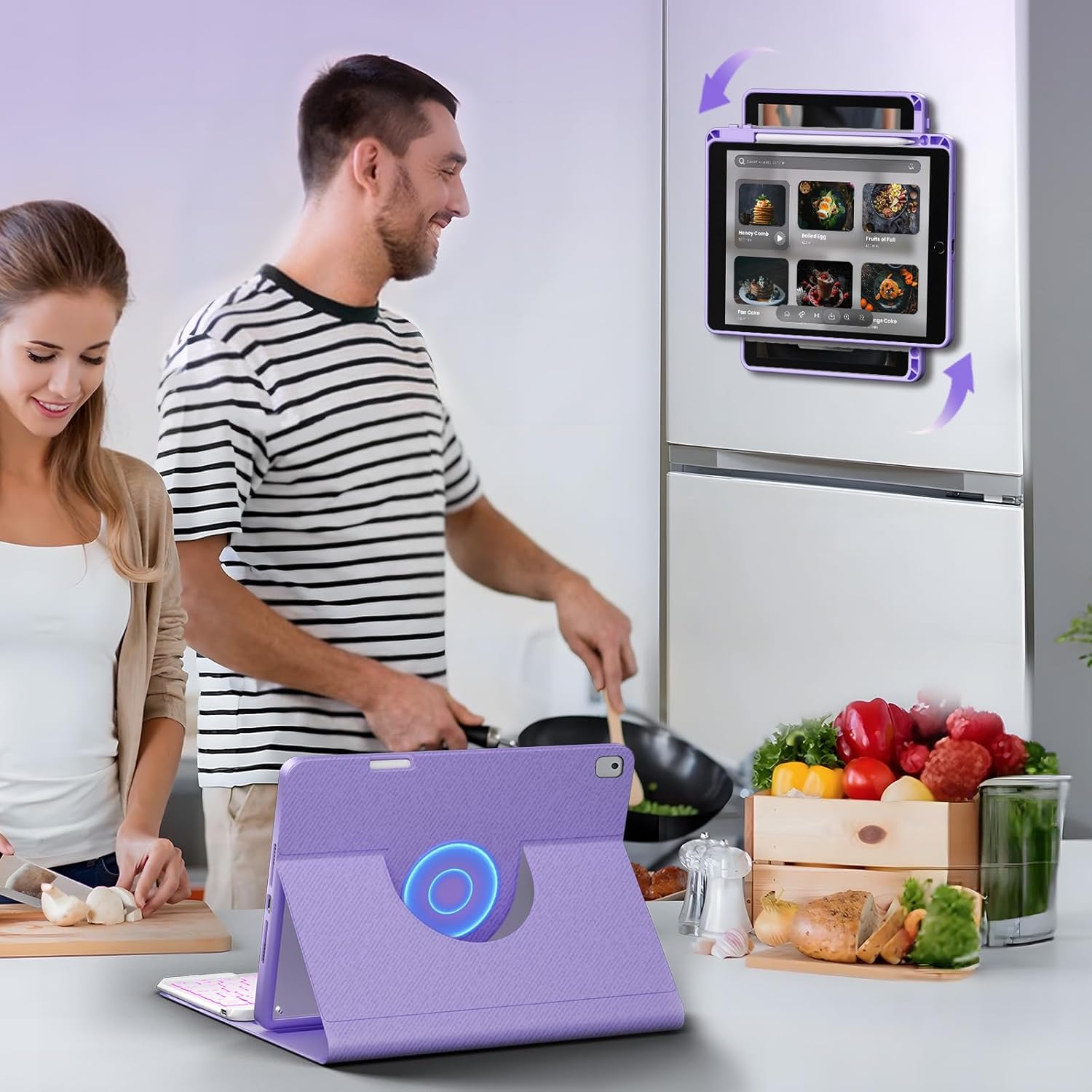 - 【Upgraded Magnetic Shell and Three-Slot Design Case】 The upgraded shell of the iPad 9th Generation Keyboard Case can be individually adsorbed on any metal, thus improving the usage scenarios and making it perfect for studying, working, reading or watching videos. Also features 3 grooves for adjustable viewing angle and stable positioning.
