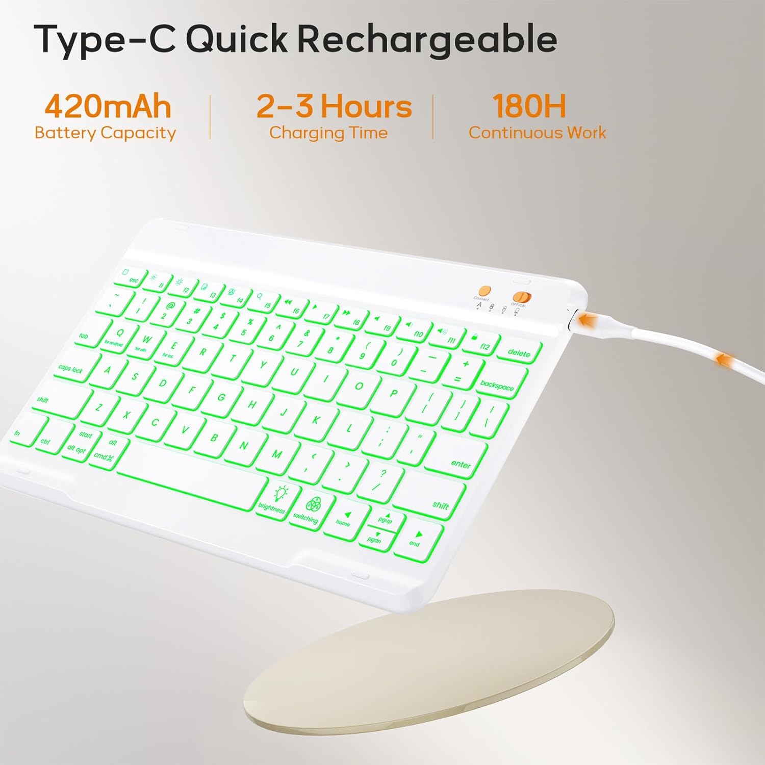 - ✅【Rechargeable Backlit Keyboard】7-color backlit and wireless keyboard allows you to type comfortably even in low light conditions. Use a USB-C charging cable to ensure long-term use.Shortcut keys make it easier for you to use your device.