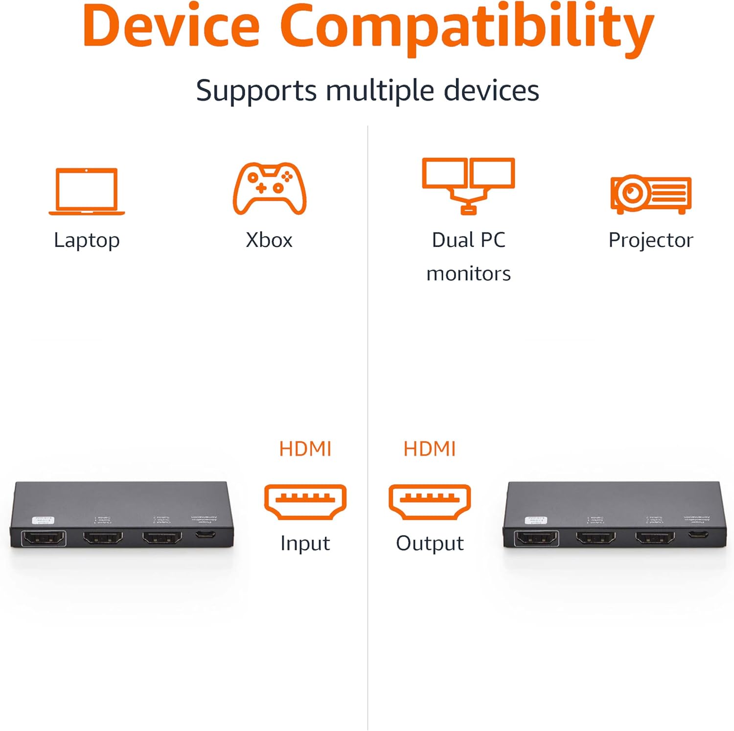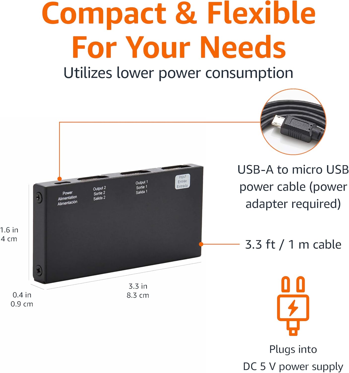 Amazon Basics HDMI Splitter 1 in 2 Out, 4K@60Hz for Dual Monitors, Mirror Only, Black