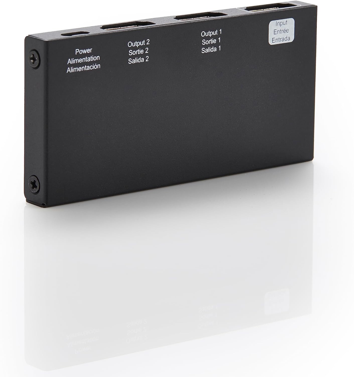 - Note: Mirrors same output on 2 screens; splitter does NOT provide 2 different outputs or allow for switching between 2 outputs
