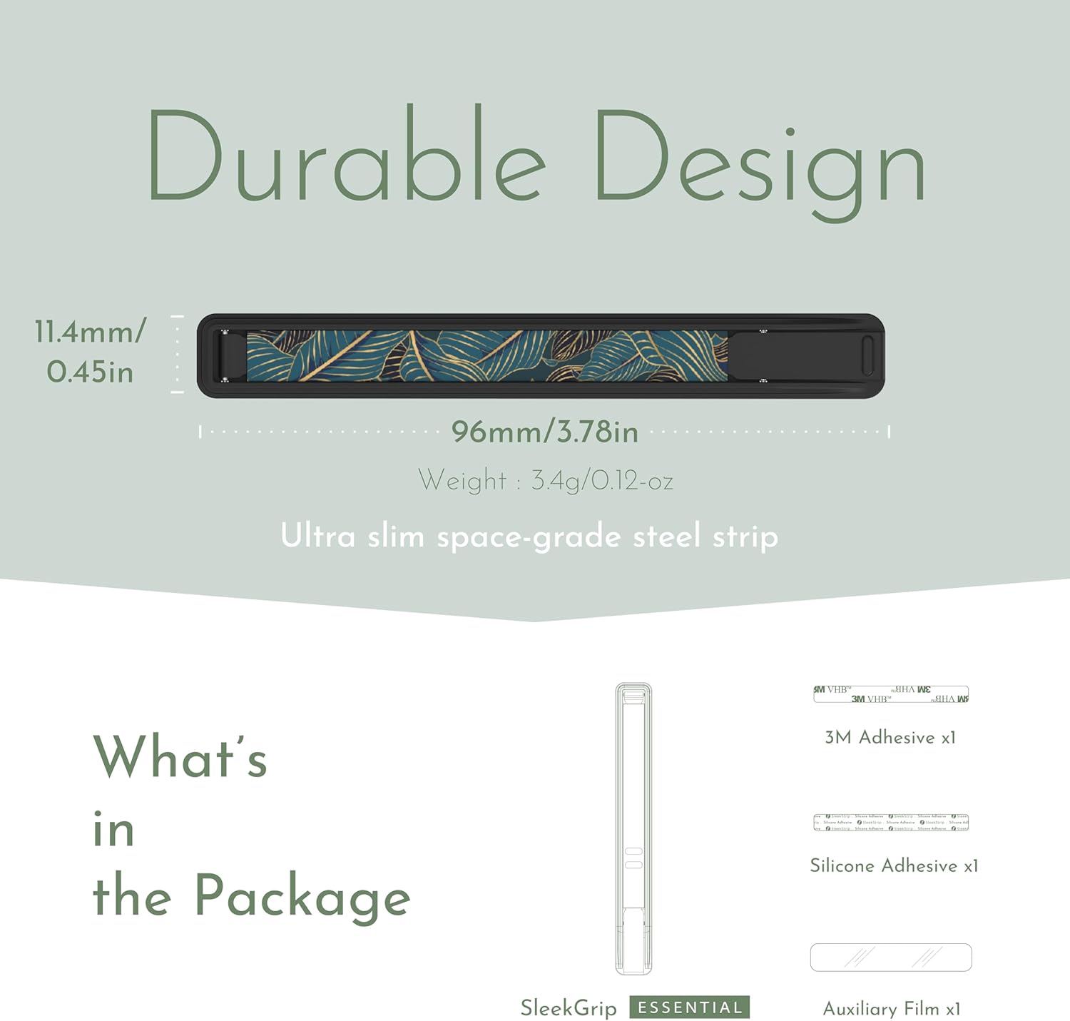 - QUALITY & DURABLE: tested for over 10,000 uses, SleekGrip is built with ultra flexible and strong metal alloy strip that forms into a loop strap phone holder when arched. It's covered with soft PU to ensure comfortable for your hands and fingers