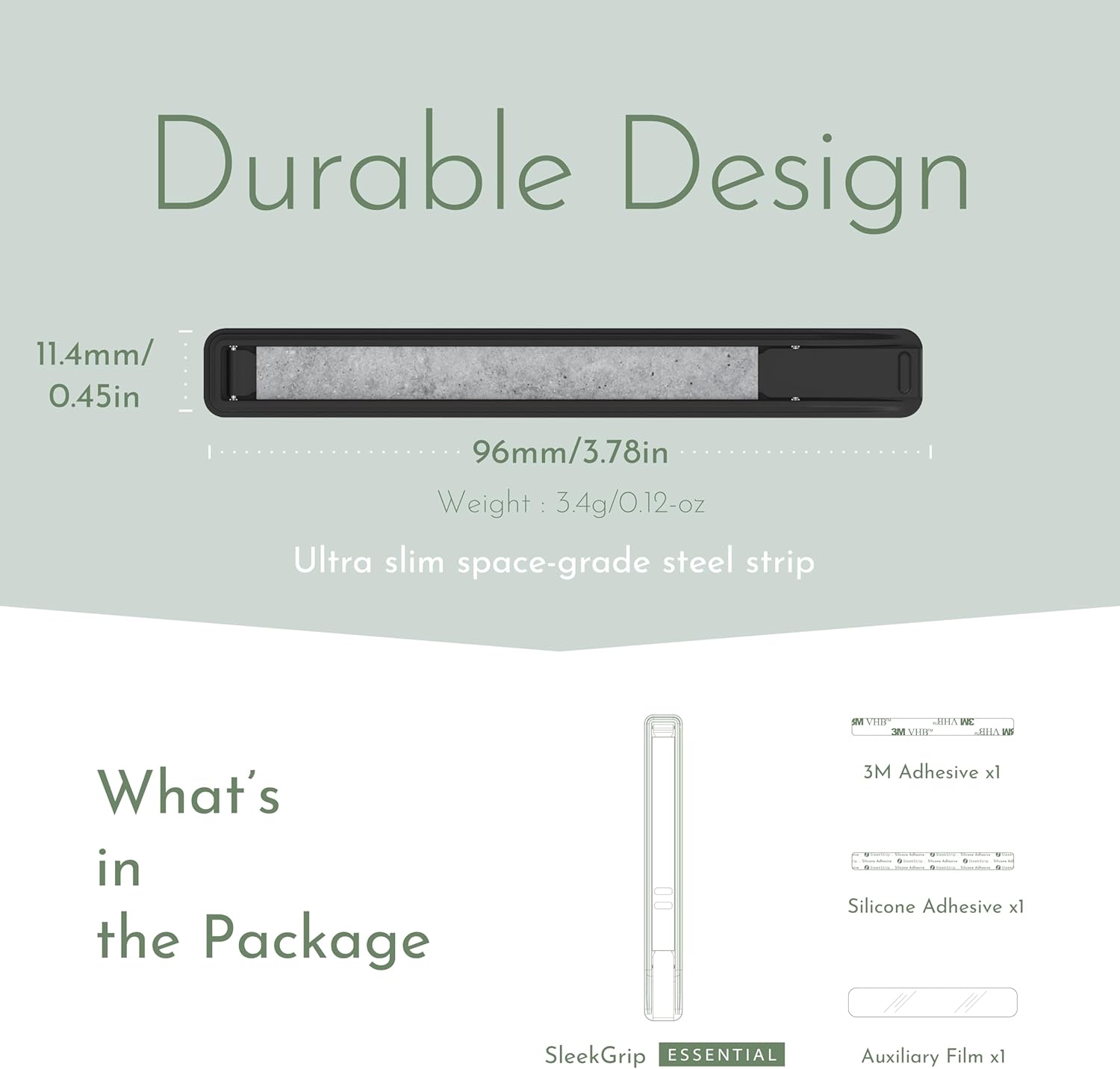 - STRONG ADHESIVE: Sticky back is high quality super strong 3M tape. Special adhesives are also provided for glass or silicone surfaces. Just stick SleekGrip to the cell phone back or phone case. Works with iPhone 16 15 14 13 12 plus pro max Android and more
