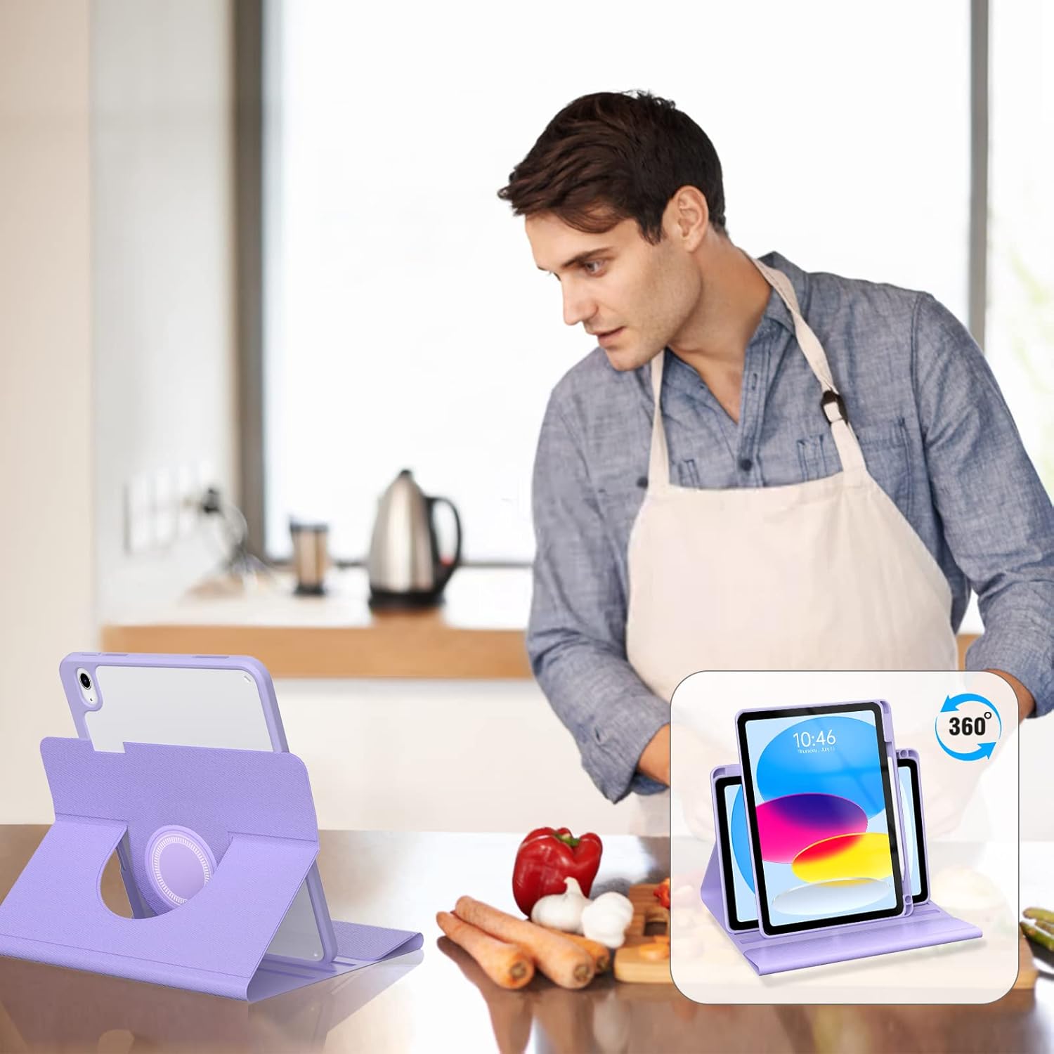 - 【360 Rotatable,Detachable Magnetic Case】The 360 rotatable magnetic case provides you with horizontal and vertical viewing angles. It can also acts as a separate tablet case. The powerful magnets allow you to attach the case to the fridge or other magnets, so you can watch video or do other things at the same time.