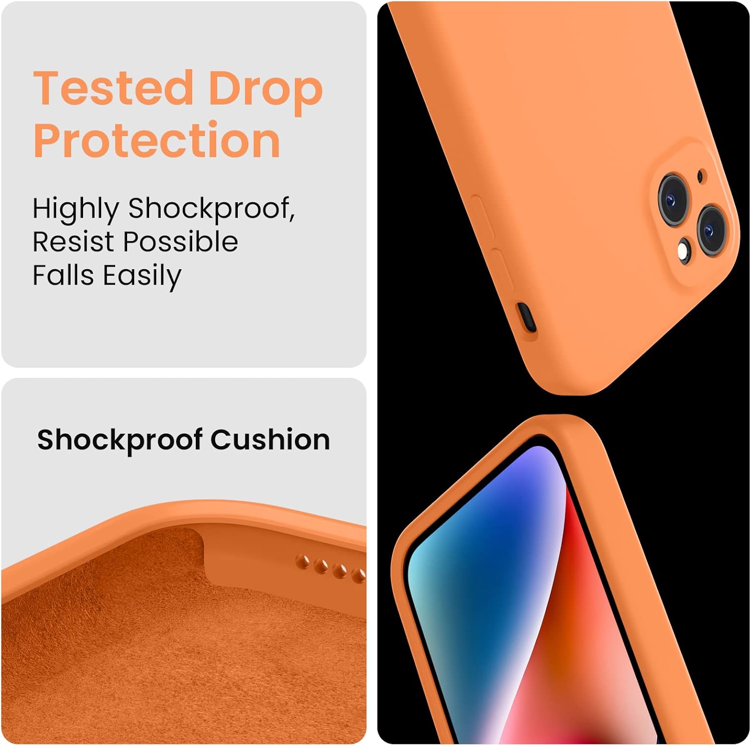 FireNova Designed for iPhone 13 Case, Silicone Upgraded [Camera Protection] Phone Case with [2 Screen Protectors], Soft Anti-Scratch Microfiber Lining Inside, 6.1 inch, Kumquat