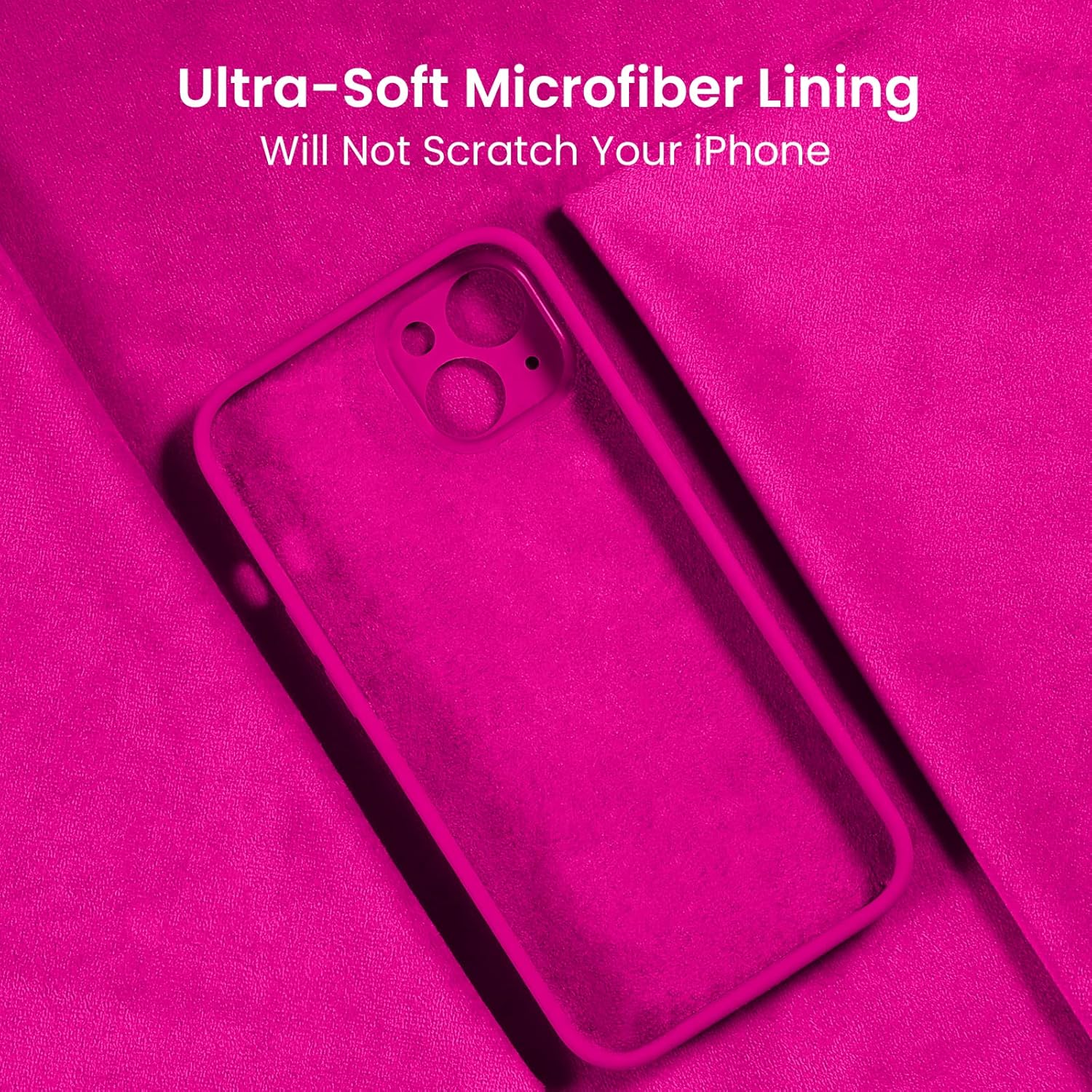 FireNova Designed for iPhone 13 Case, Silicone Upgraded [Camera Protection] Phone Case with [2 Screen Protectors], Soft Anti-Scratch Microfiber Lining Inside, 6.1 inch, Hot Pink
