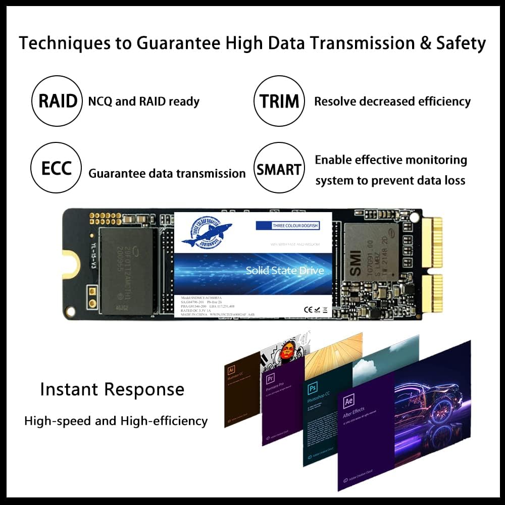 - [High Speed & Safety] With Dogfish PCIe NVMe SSD, greatly upgrade your Macbook 2013-2017, read speed is up to 2150 MB/s, write speed 1650 MB/s (1TB). Faster boot times, faster application loading times and better system responsiveness. With the Encryption program, protect your data safely.