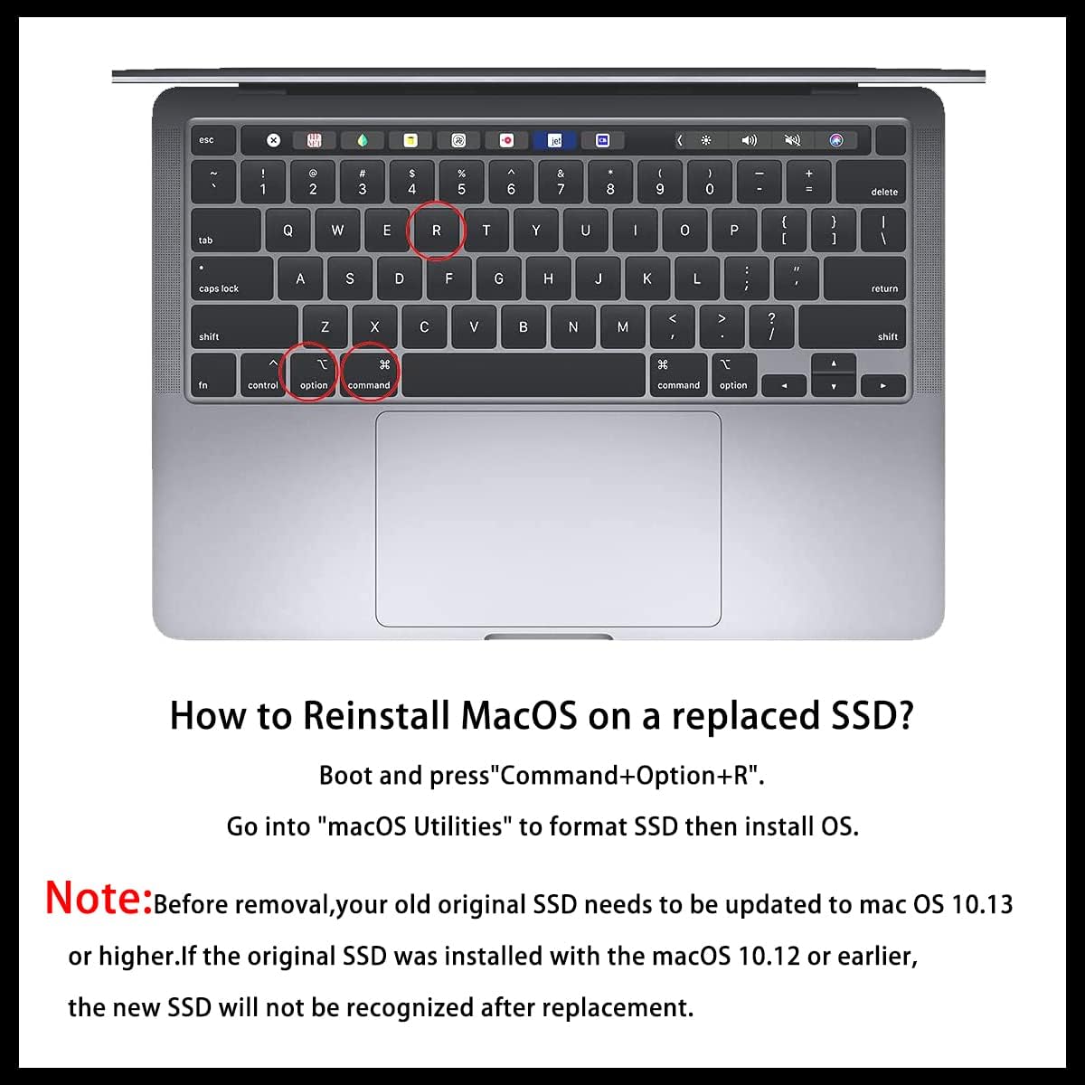 - [Reinstall MacOS] 3 ways to install macOS: From Time Machine Backup; Make USB Installer;From Internet Recovery. You can check some video on Amazon, or check our installation manual in listing documents, or there are simple steps in the product description below. Remember to Reformat(Erase) the new SSD before Restore the MacOS.