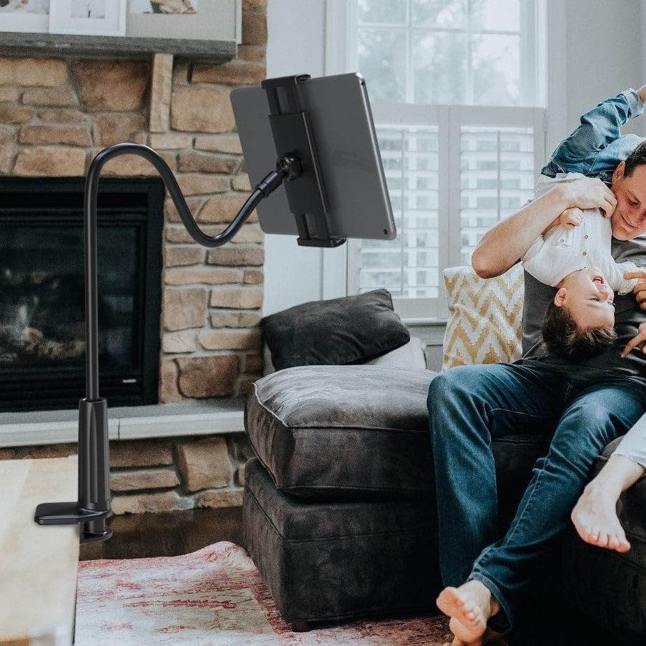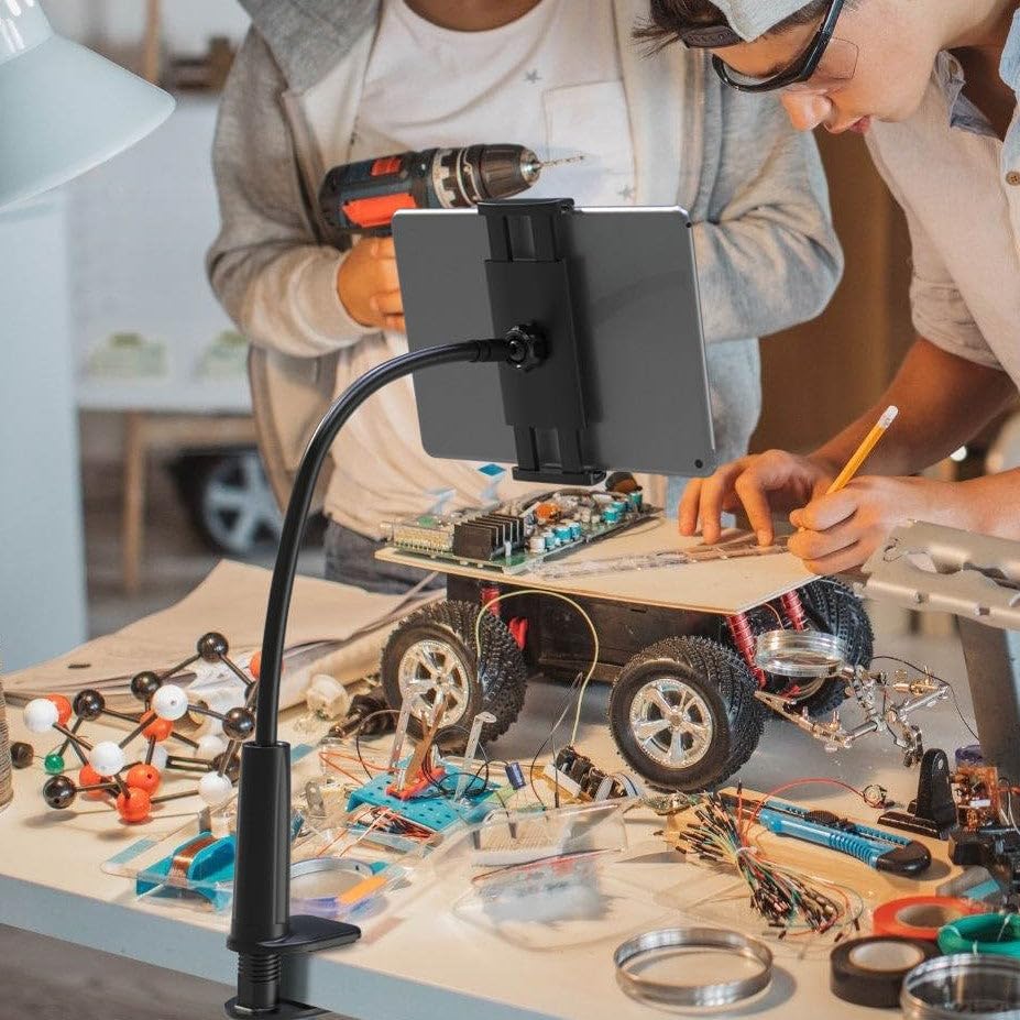 - VERSATILE APPLICATIONS: Unleash the versatility of the LEVO as a desk phone mount, effortlessly clamping onto your workspace. Experience a wide range of applications as it securely holds phones and tablets. Whether face-timing on the sofa, taking office calls at your desk, following recipe videos in the kitchen, or navigating hands-free during boating, this phone and tablet stand adapts to your needs. Transform it into a reliable tripod for overhead video recording.