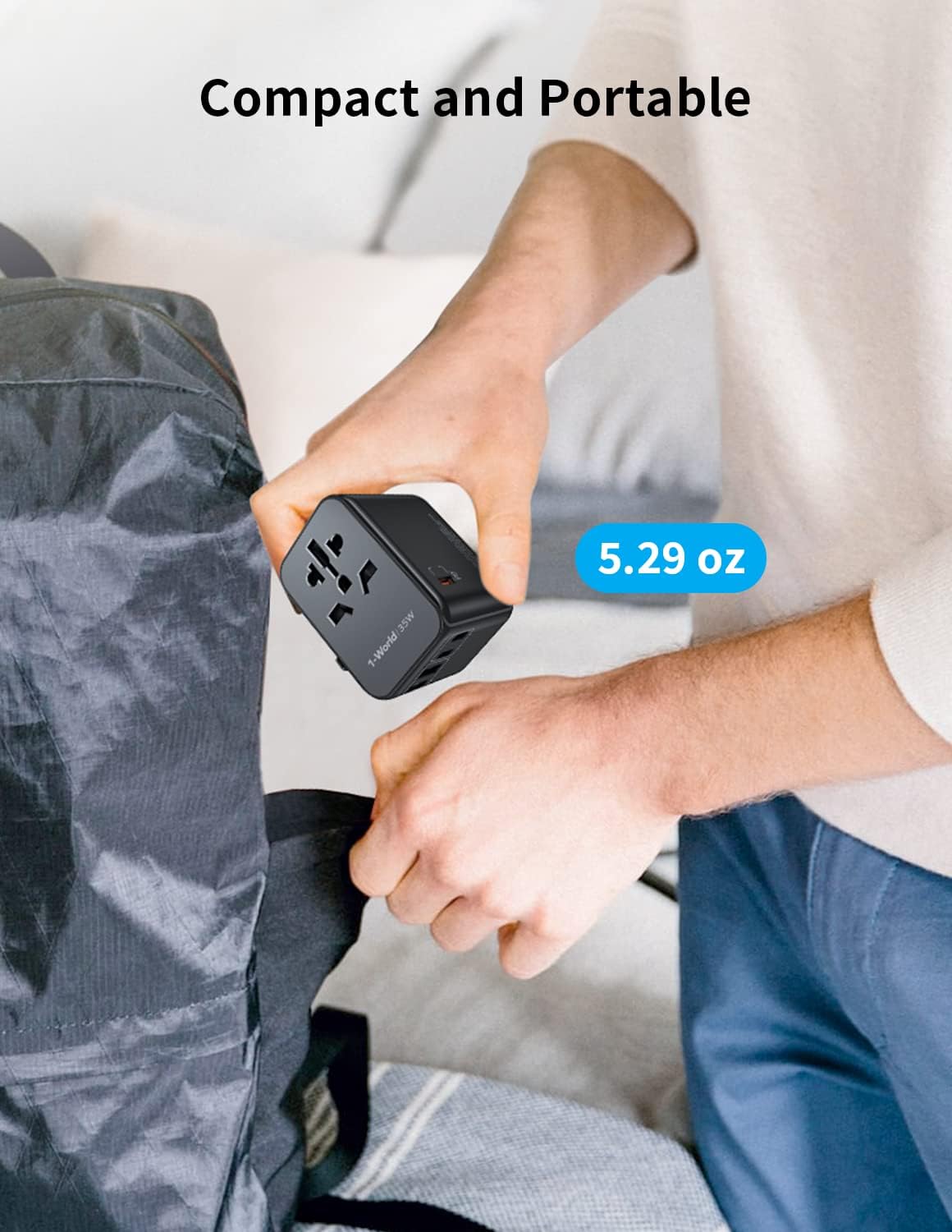 - PD 35W Fast Charging: This international adapter is equipped with 3 USB-C ports, 2 USB-A ports and 1 AC outlet (1250W Max in US) and supports PD3.0 & QC3.0 fast charging. The USB-C PD ports can even reach an incredible high speed of 35W. It is ideal for your USB devices, especially laptop, smartphone, tablet, power bank, camera, Vision pro, etc.