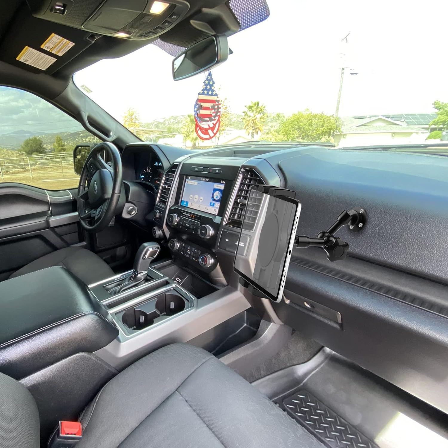 Heavy Duty Drill Base iPad Mount, Tablet Holder for Truck/Car/Boat/Wall/Desk/Vehicle Dashboard,360° Adjustable Aluminum Alloy Arm Mount Compatible with 7~12.9" iPad/Nexus/Fire HD/e-Book/Switch