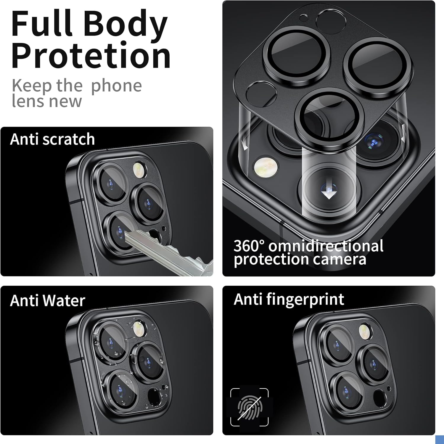 - [Full Protection] Full coverage drops protection anti-scratch, shockproof. The aviation aluminum metal ring and 9H tempered glass camera protector effectively protecting the lens,featuring maximum protection from scratches, scrapes, and bumps.
