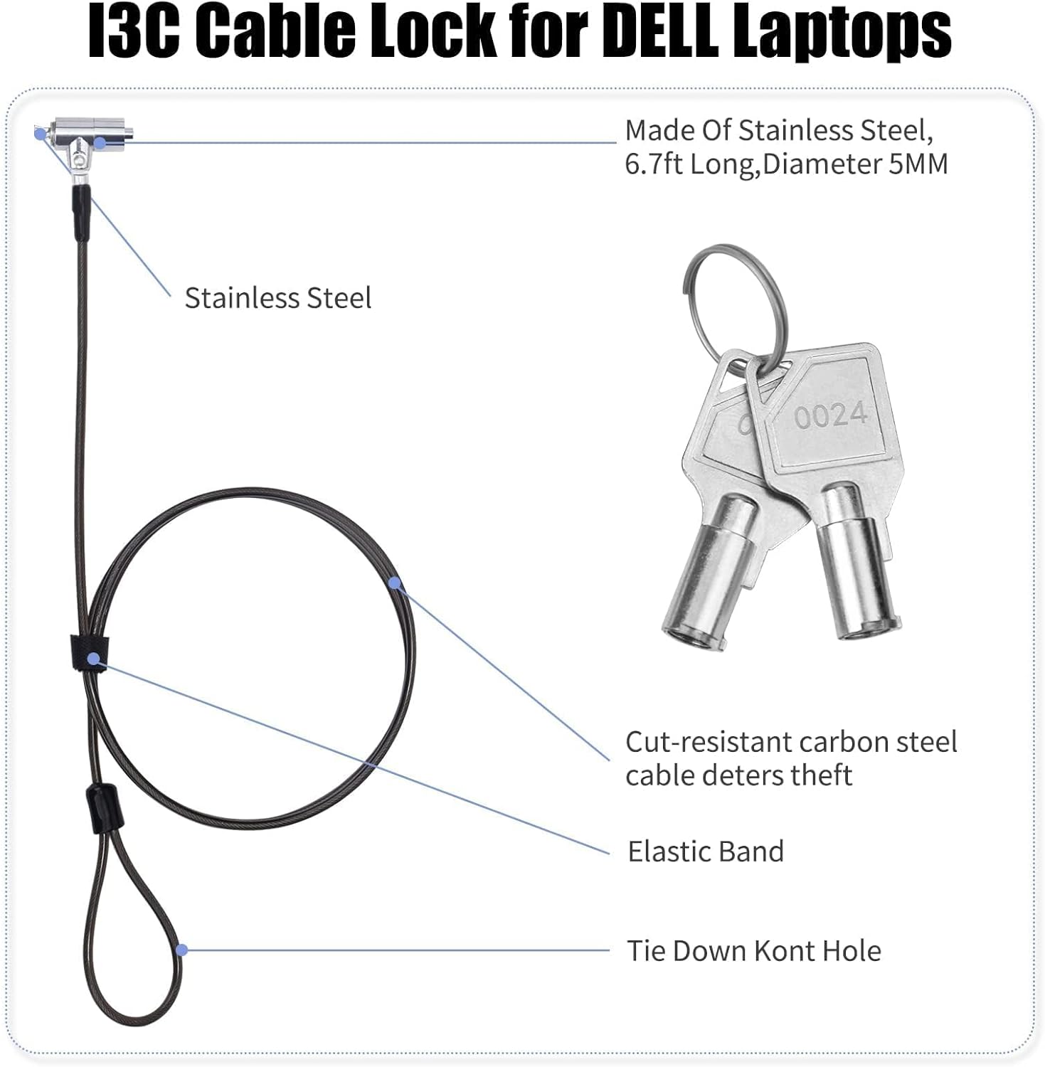 I3C Laptop Cable Lock Hardware Security Cable Lock Anti Theft 6.7FT Cable Lock Compatible with Laptop Anti-Theft Security Locking Cable Compatible for Wedge Type Slot(6 * 2.5mm)