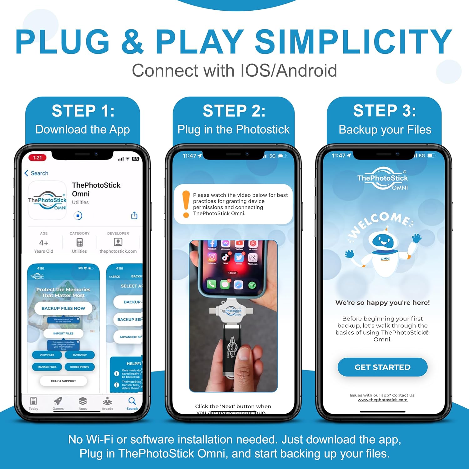 - Keeps Your Files Safe & Organized - Never worry about your computer crashing or losing files in the cloud again. ThePhotoStick Omni securely backs up each file and automatically organizes them neatly into folders so they're easy to find.