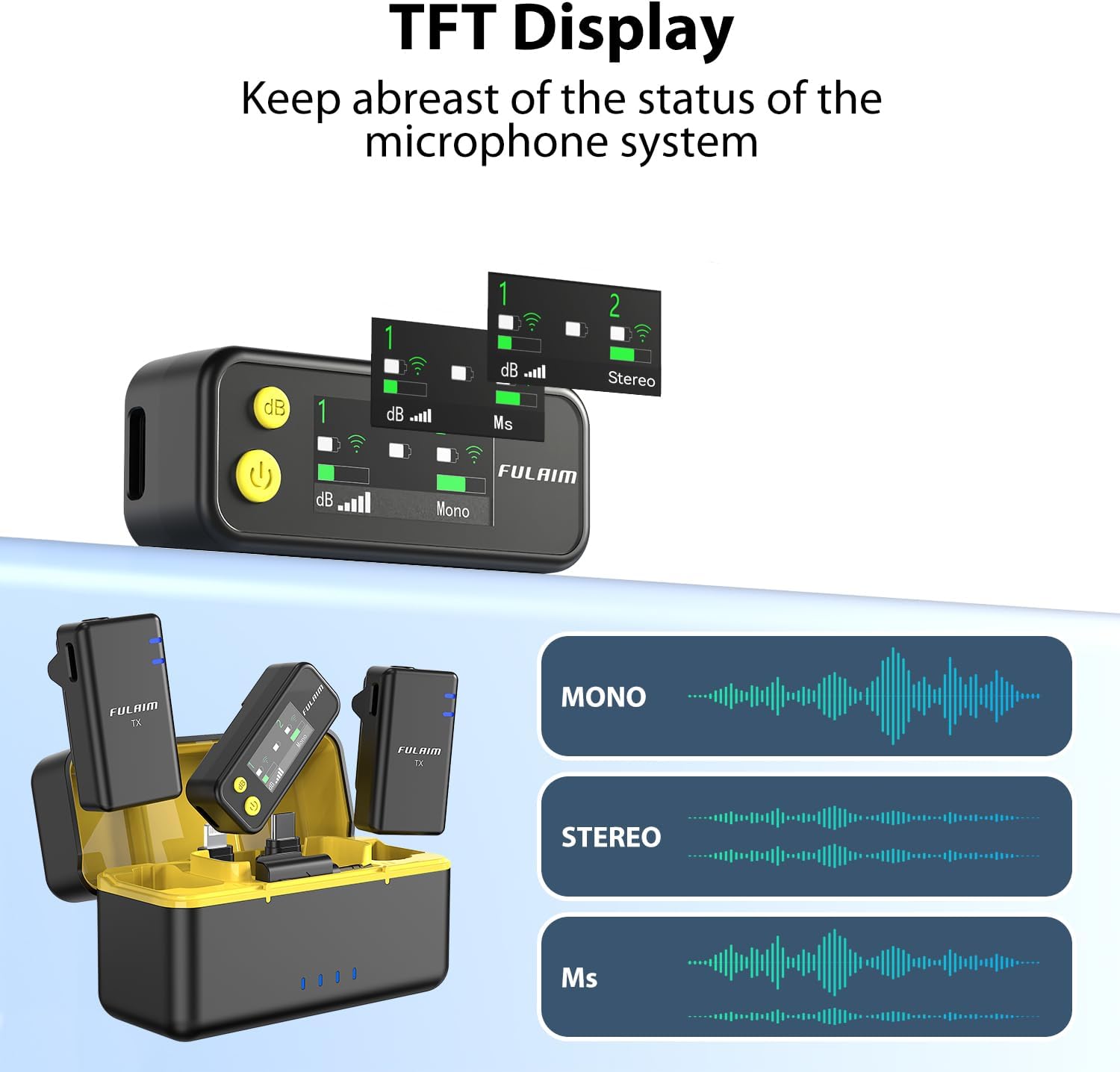 - Wide Compatibility: FULAIM X5M wireless lavalier mic comes with an iPhone adapter, type-c adapter, and 3.5mm audio cable, making it compatible with a wide range of devices, including iPhone and Android smartphones, as well as cameras.