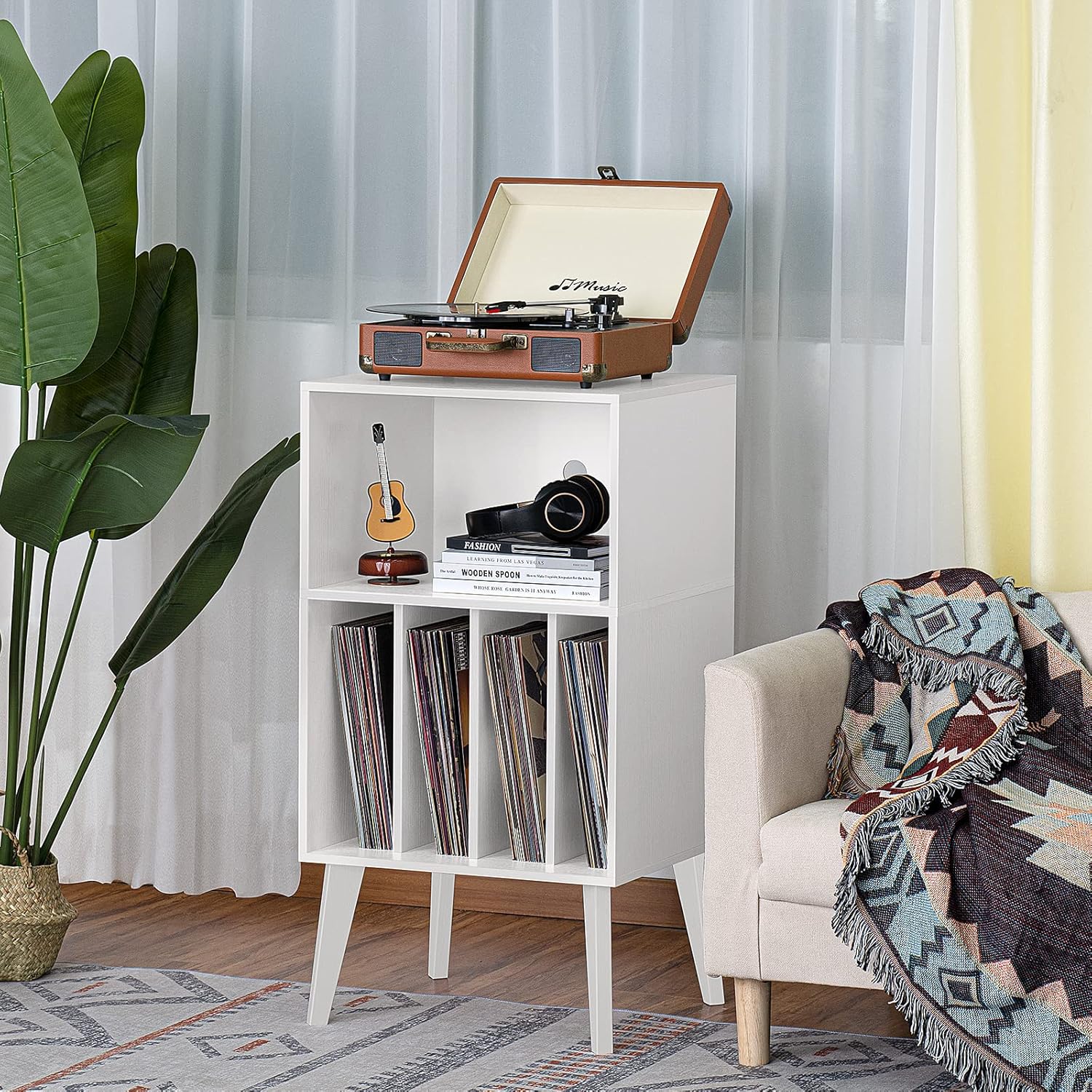 - 【Elevated Display Space】We have designed the middle area of the large vinyl record storage to be 10.4'', which allows you to freely place audio equipments and decorations.The perfect height of this cabinet is designed according to the height of the human body, which is in line with your operational flow. The circular line holes on the back panel of the turntable stand makes it convenient for you to connect music devices. Let's start a wonderful music appreciation party together!