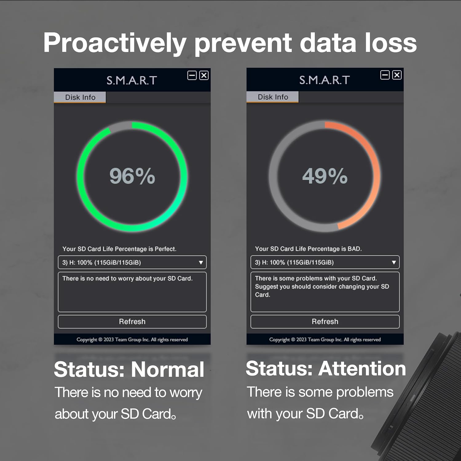 - Memory card condition monitored by S.M.A.R.T is a click away