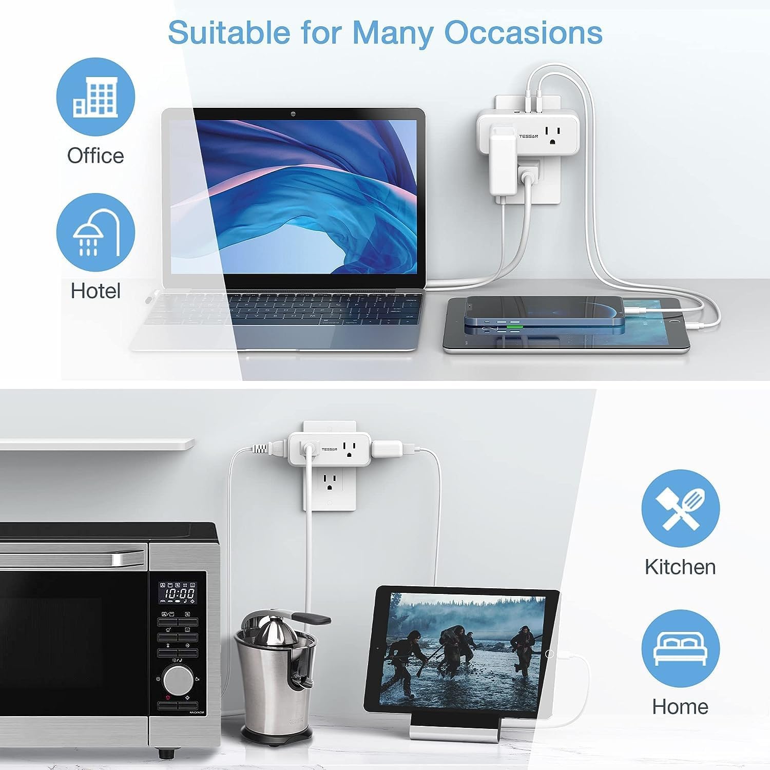 Multi Plug Outlet Splitter with USB, TESSAN 4 Electrical Multiple Outlet Extender with 3 USB Ports, Mini Double Plug Expander Surge Protector for Home, Office, Kitchen, Dorm Essentials, White