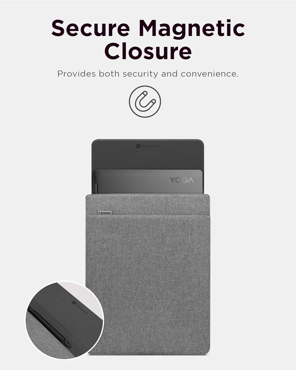 Lenovo Slim Laptop Sleeve 14 Inch Notebook/Tablet - Compatible with MacBook Air/Pro - Eco-Friendly Lightweight Case with Accessory Pocket & Magnetic Closure - Grey