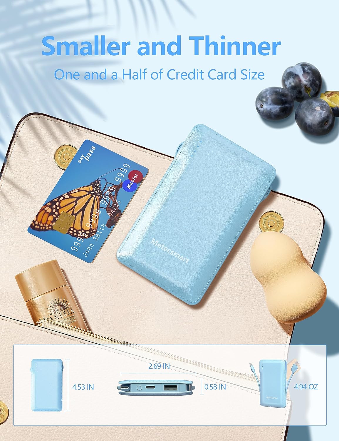 - Certified Safe: Metecsmart external battery built in UL certified battery cell ensures your safety.Keep away from worrying overcharge/overheating/overload issues. Most important is that the ultra-high density Metecsmart battery safer than the normal Li-polymer cell, which aslo makes it's so ultra-slim that easy to carry