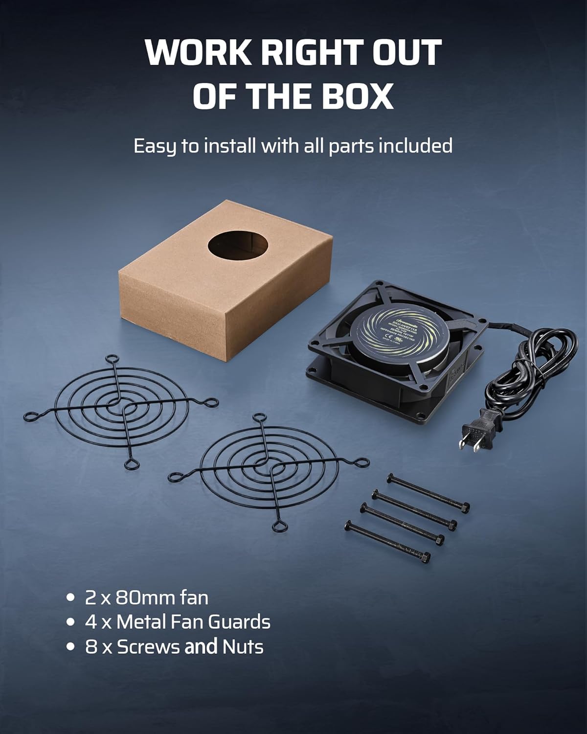 - [Long Lifespan & Excellent Heat Dissipation] UL approved and dual ball bearings, ensuring a service life of up to 50,000 hours of 7-day operation; large air volume of 90CFM, allowing the cooling fan to effectively drive air circulation and achieve excellent heat dissipation, keeping your equipment cool and protected; it can be placed flat or upright