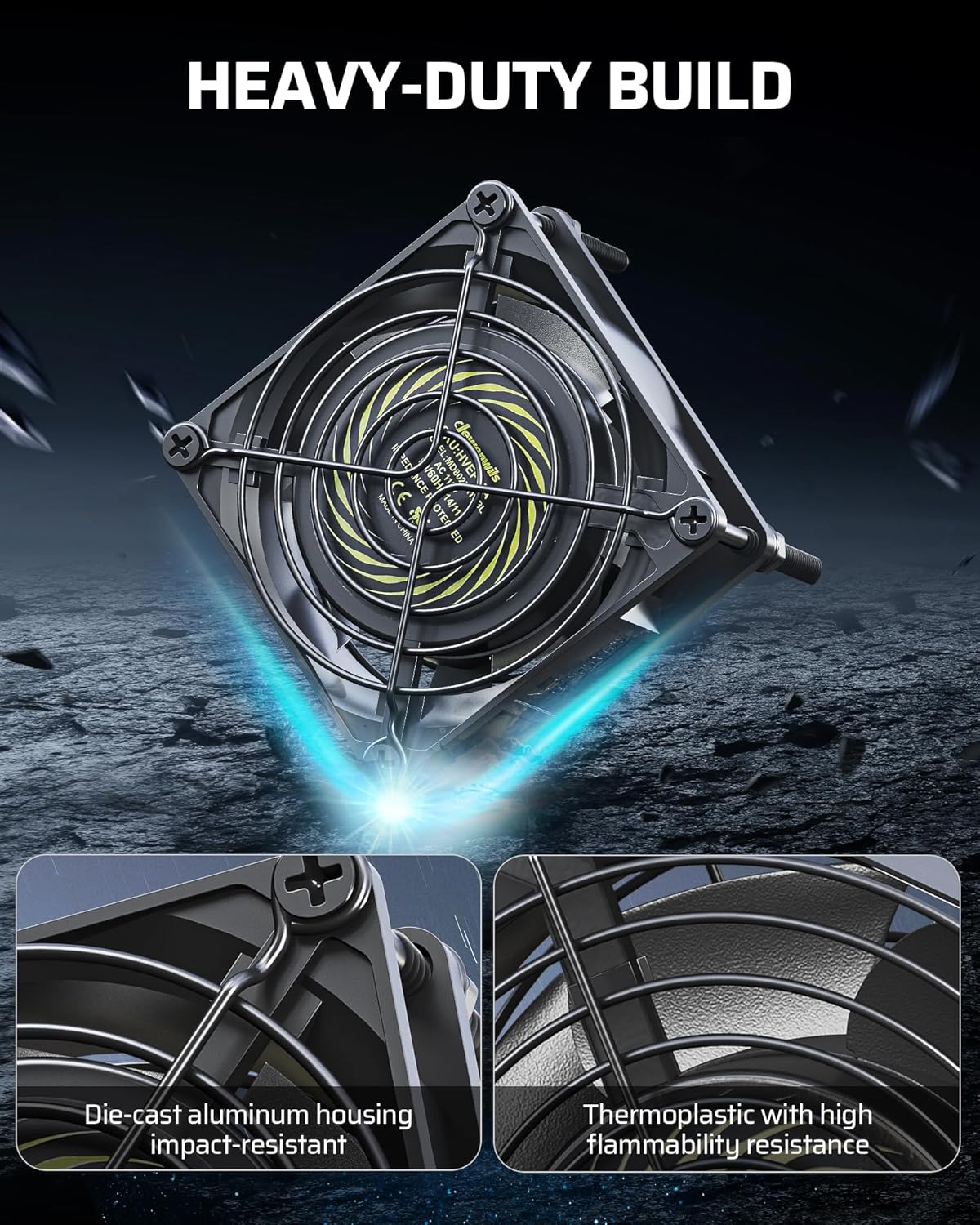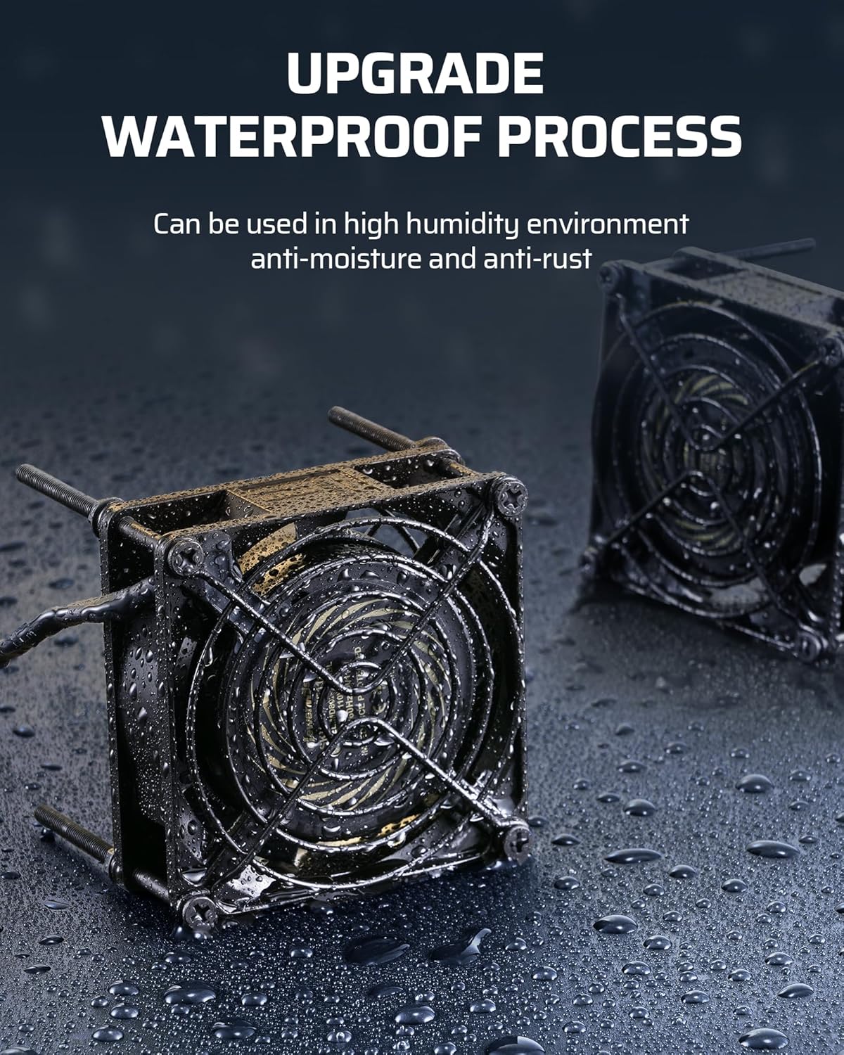 - [Advanced Waterproof] Our advanced technology ensures the high quality; the internal parts and blades are coated with waterproof paint, making them resistant to water damage; the body of the 120mm fan is designed to be both anti-rust and waterproof, allowing it to operate flawlessly in high humidity environments; bring you a safe use experience