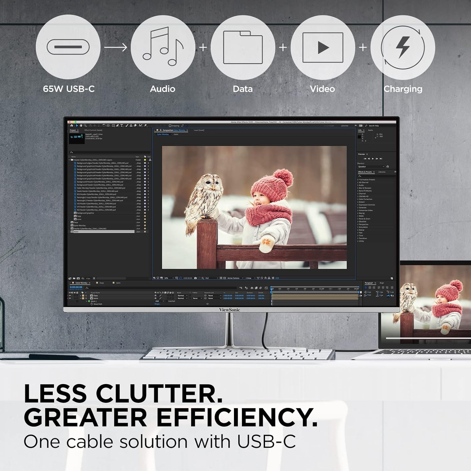 ViewSonic VX2776-4K-MHDU 27 Inch 4K UHD IPS Monitor, 65W USB C, HDR10 Content Support, Thin Bezels, HDMI and DisplayPort