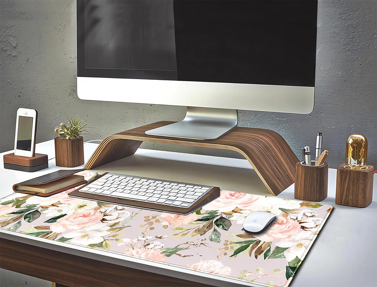 - 【Ultra Large Extended Size 】The flowers desk mats size of 31.5x11.8x0.12 inch will fit your desktop perfect, can put your mouse, gaming keyboard and other desk items. Add color, style and comfort into your workspace.