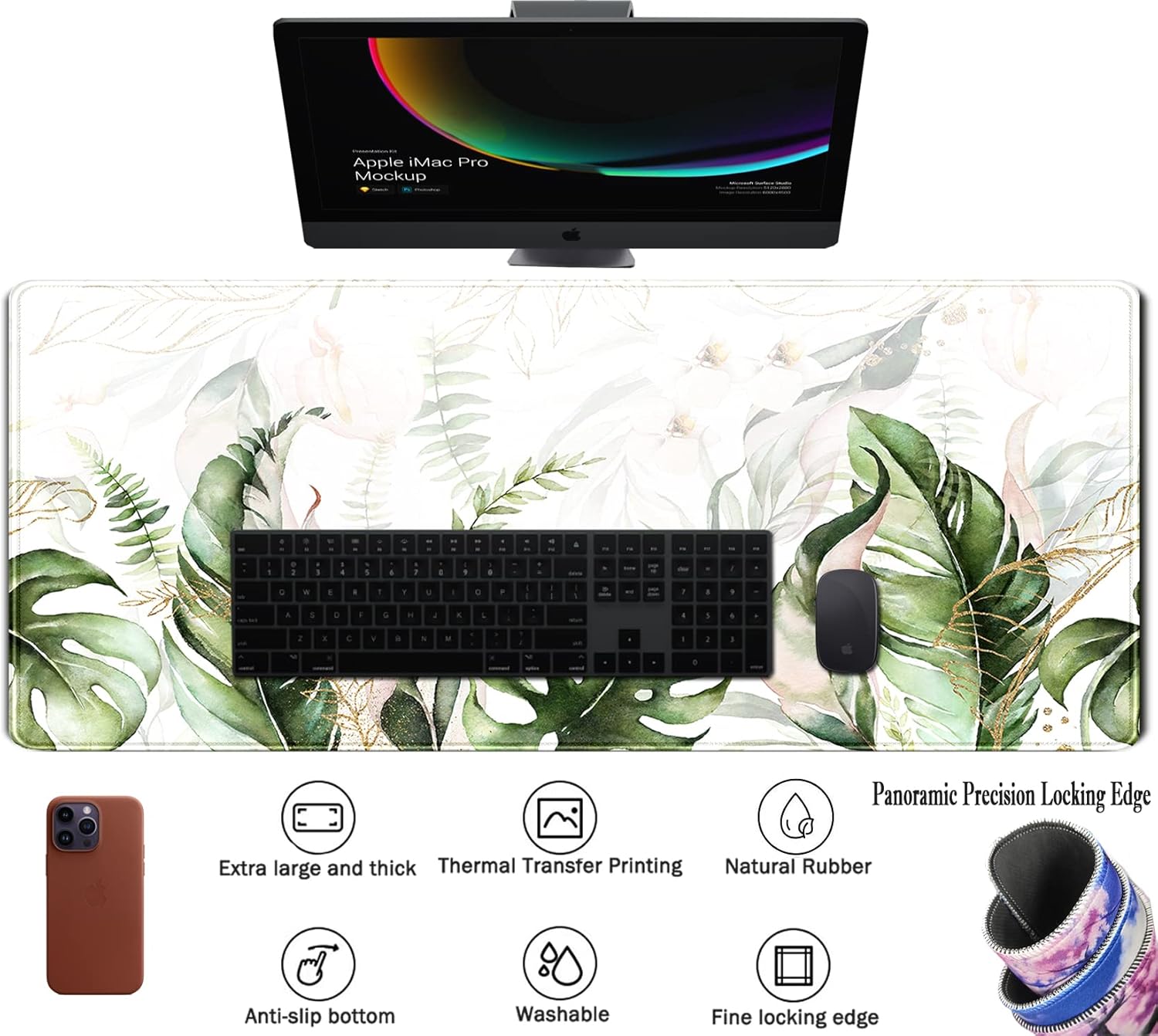 - 【Ultra Large Extended Size 】The green tropical sage leaves desk mats size of 31.5x11.8x0.12 inch will fit your desktop perfect, can put your mouse, gaming keyboard and other desk items. Add color, style and comfort into your workspace.