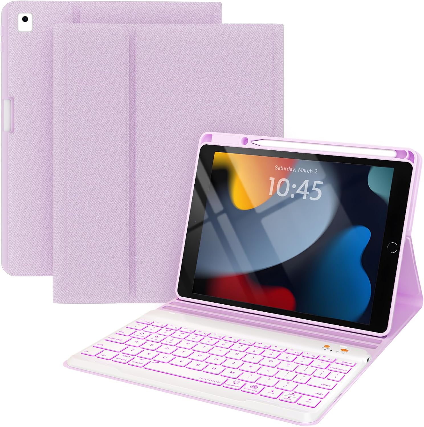 BLUTLOTUS Keyboard Case for iPad 9th/8th/7th Generation 10.2 inch 2021/2020/2019, iPad Pro 10.5-inch Case with Keyboard,iPad Air 3 2019, 7 Color Backlit Removable Bluetooth Wireless(Purple)