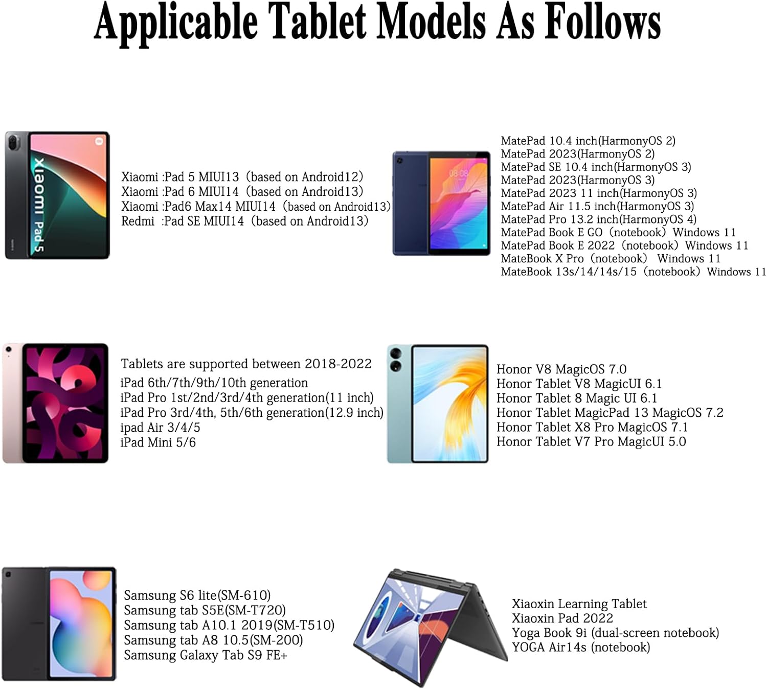 - Compatible Devices : It compatible with iPhone6-14 Pro/MAX/Mini/Plus, iPad Mini and iPad Pro 2018-2022 as well as some Android devices, NOT support Windows tablets. For specific applicable tablet models, please check the list of compatible devices below. Other models not listed may be incompatible. [NOTE] BEFORE PURCHASING , PLEASE CONFIRM WHETHER YOUR DEVICE MODEL IS COMPATIBLE It compatible with iPhone6-14 Pro/MAX/Mini/Plus, iPad Mini and iPad Pro 2018-2022 as well as some Android devices, NOT support Windows tablets. For specific applicable tablet models, please check the list of compatible devices… See more