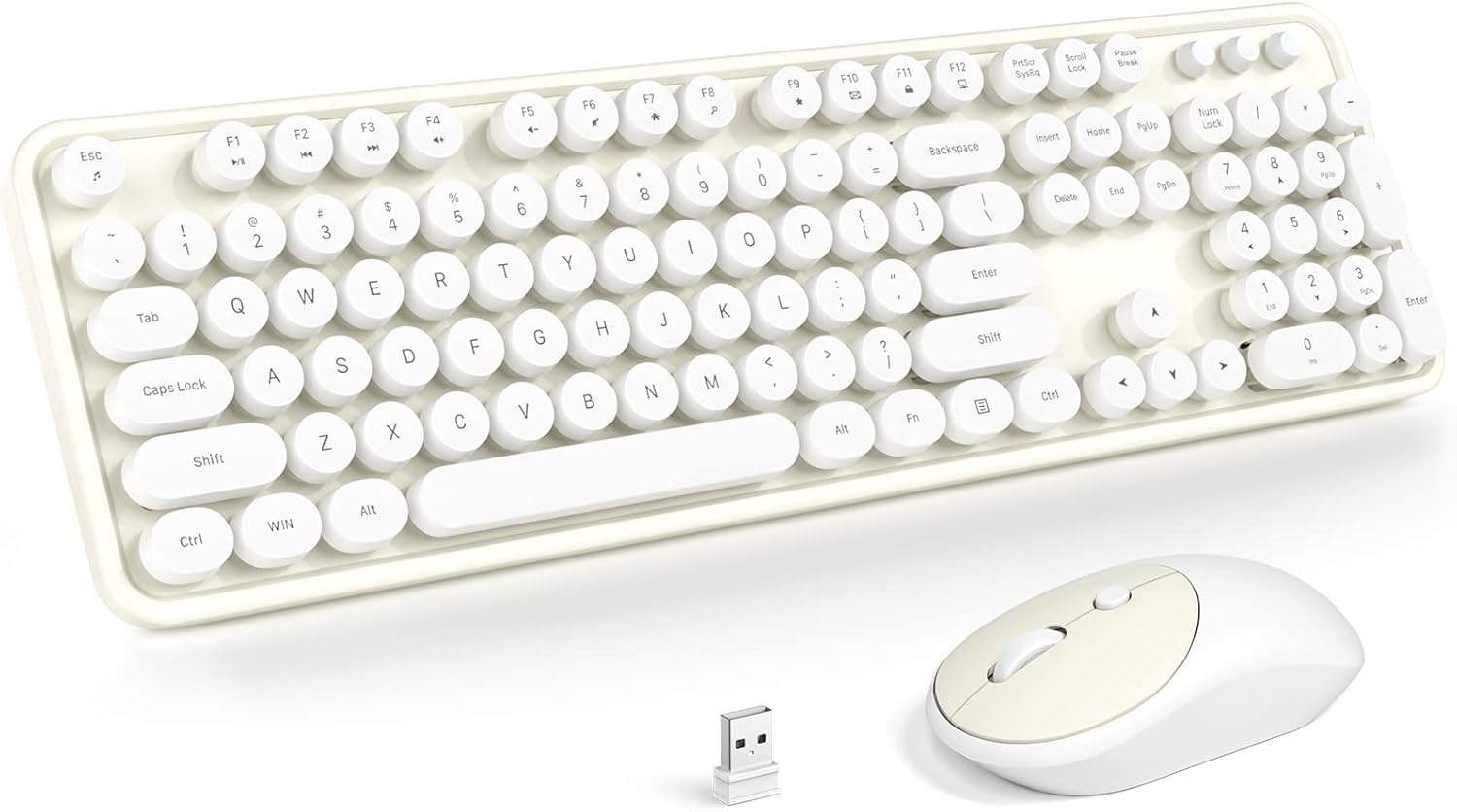 KNOWSQT Wireless Keyboard and Mouse Combo - White-Milky Full-Sized 2.4 GHz 104 Keys Typewriter Cute Keyboard, Round Keycap and Optical Mouse for Windows, Computer, PC, Laptop, Desktop
