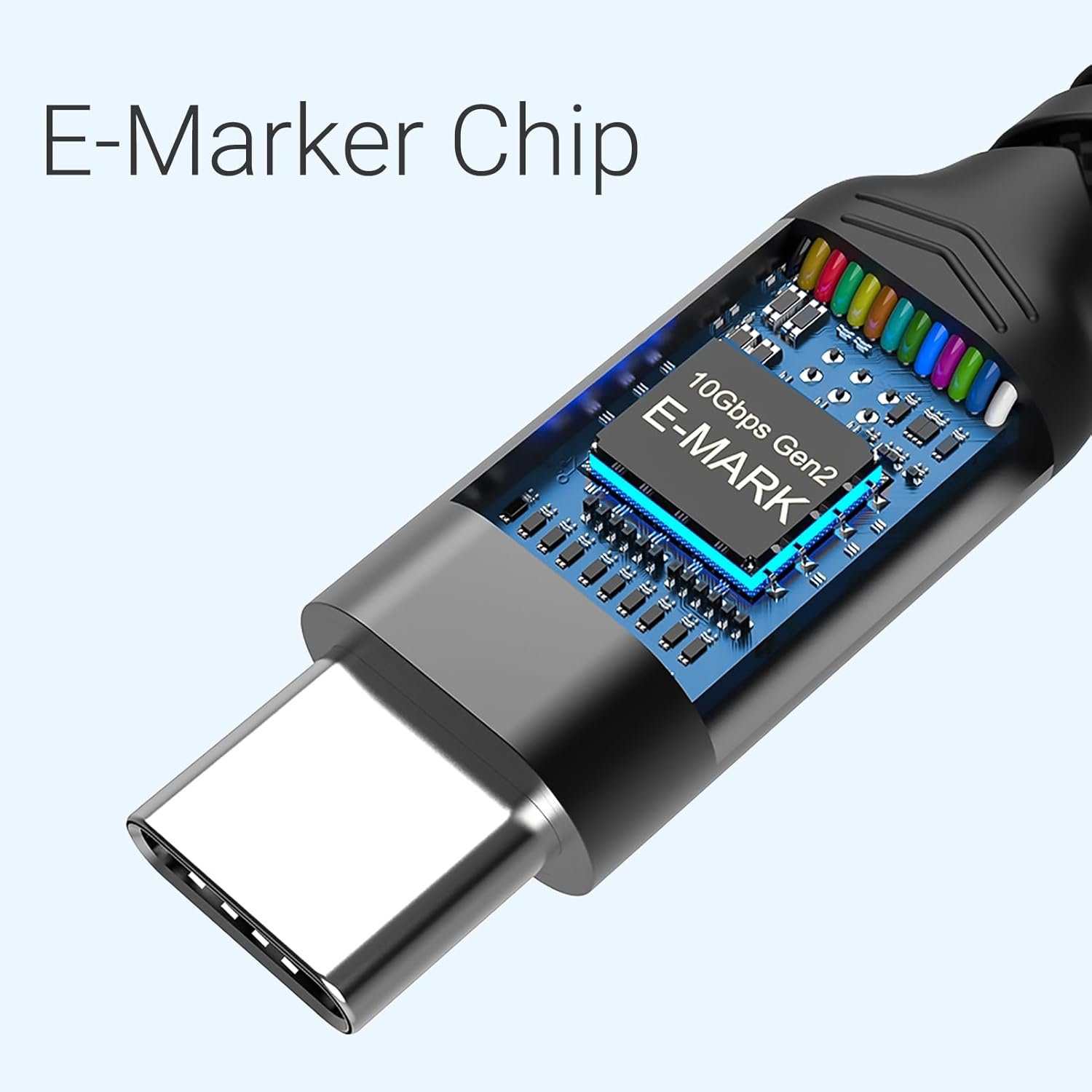 - [100W USB C Cable] : This USB C to USB C 3.1 Gen 2 Cable offers 100W 20V 5A with built in E-marker chip and PD3.0 QC3.0 quick charge