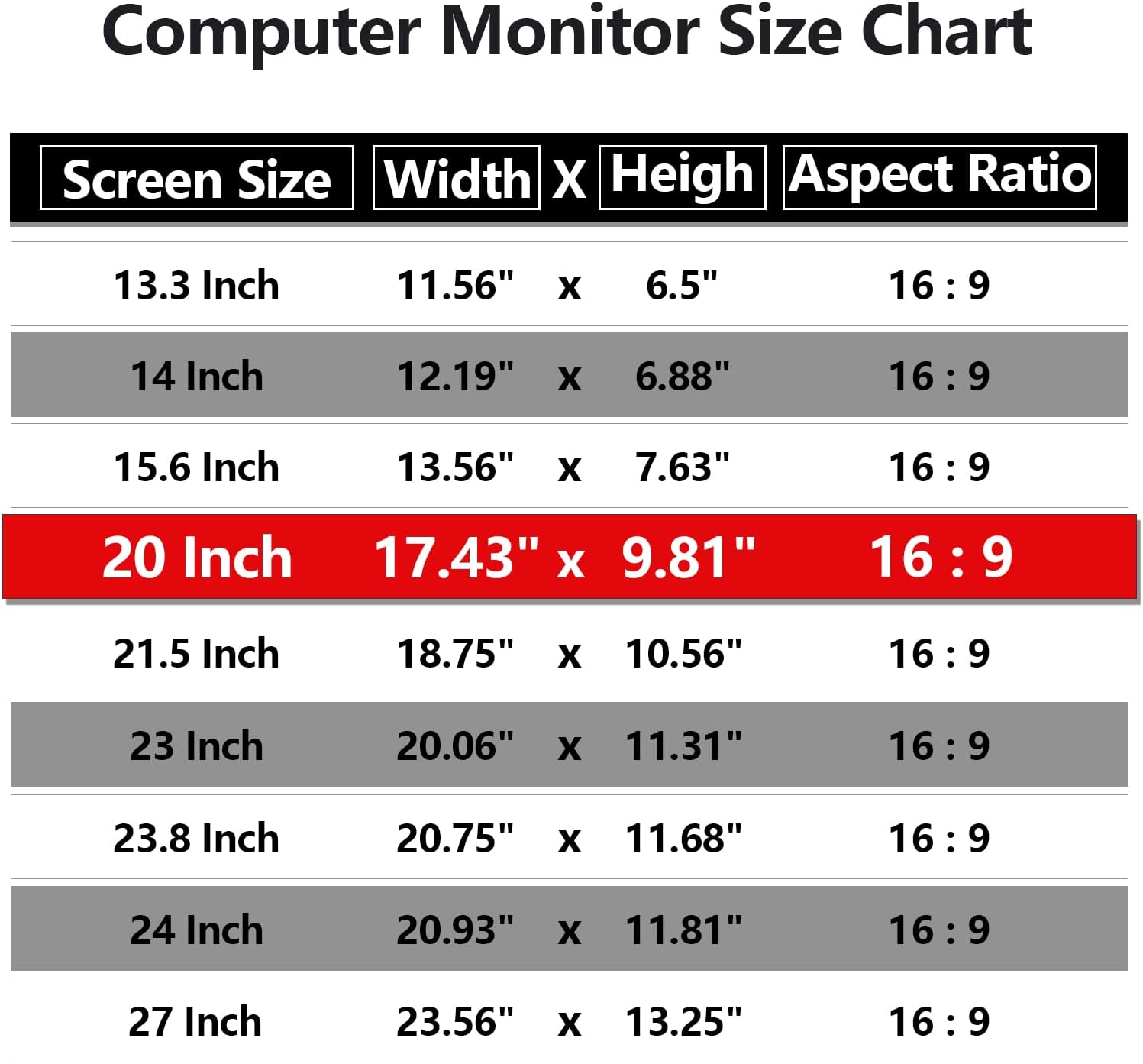 - 【Perfect for 20 Inch Monitors】: RedANGEL privacy screen is carefully designed to fit with 20” computer monitors with 16:9 aspect ratio, Width: 17 7/16"(443mm), Height: 9 13/16"(250mm), compatible with Hp Dell Acer Asus Samsung LG ViewSonic and More.