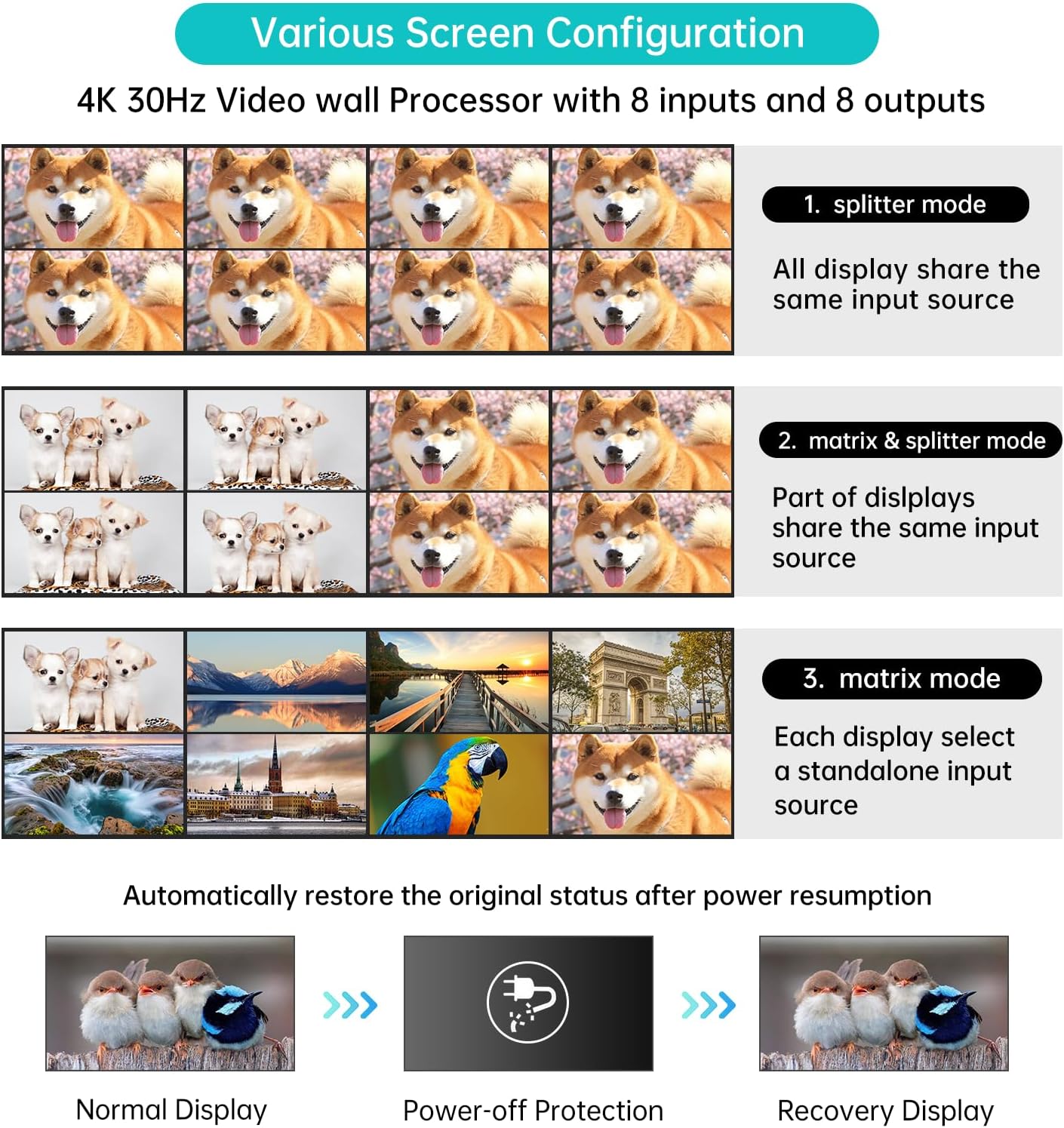 - 4K Resolution: This hdmi matrix 8 in 8 out supports resolution up to 4K 3840*2160@30Hz, 8KV ESD protection. Support Local LAN control from other computer by installing MatrixController.