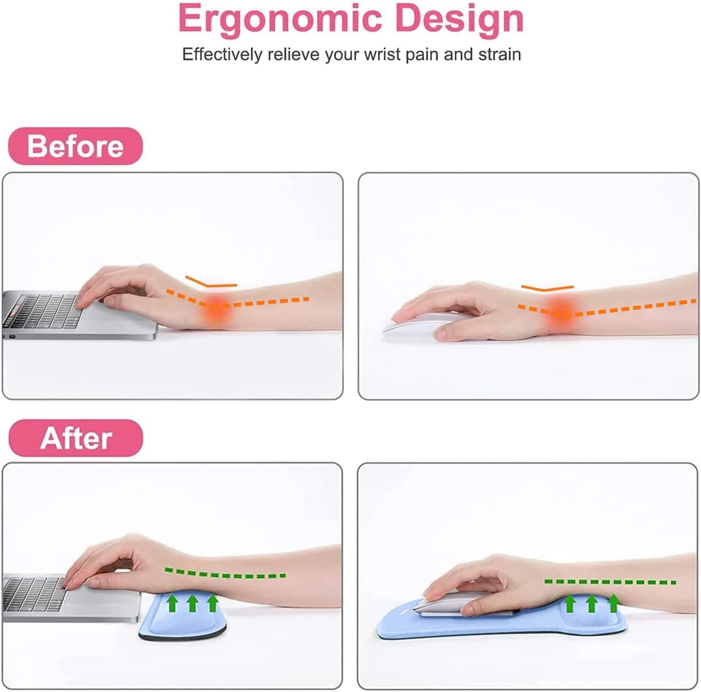 - Ergonomically designed with breathable/durable neoprene cloth and raised memory foam. Efficient for easy typing & pain relief. Offers soft support to relieve pressure and pain of your wrist, keep your wrist in a natural and comfortable state.