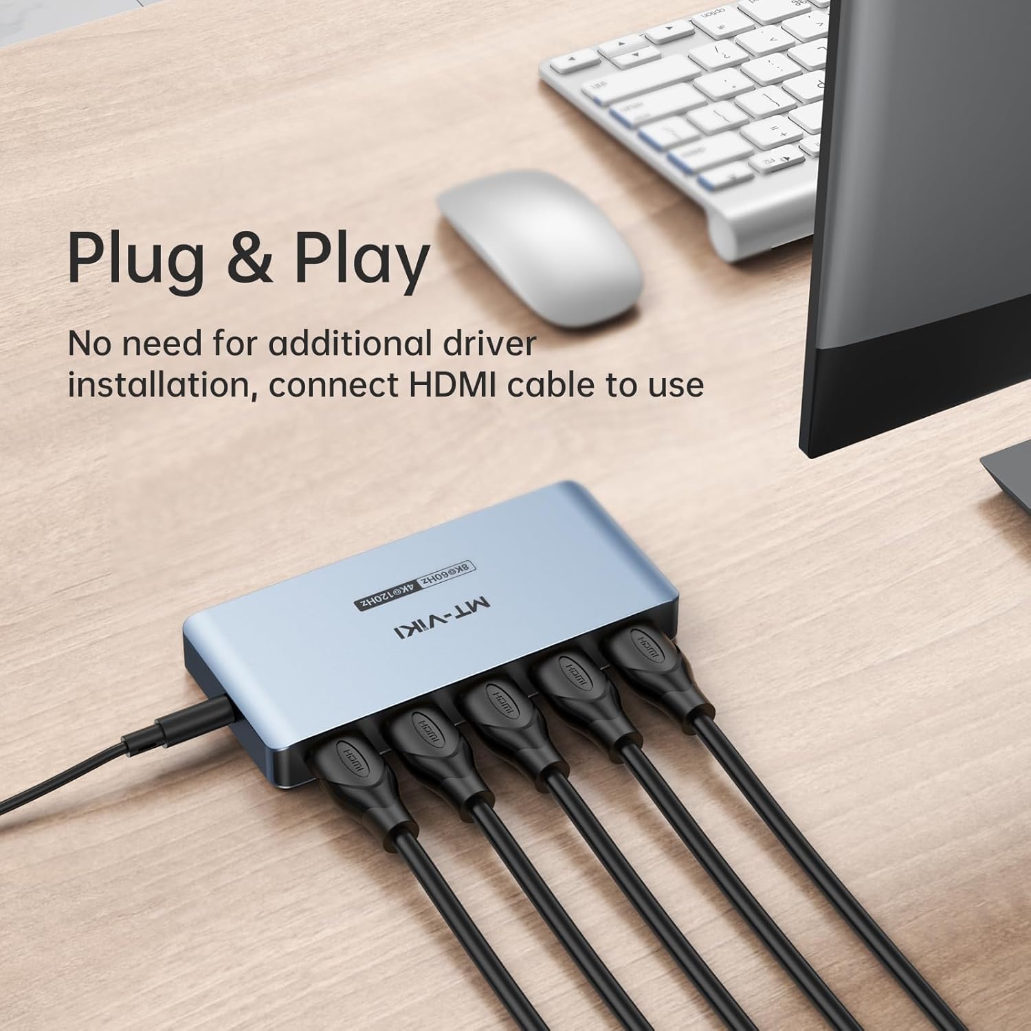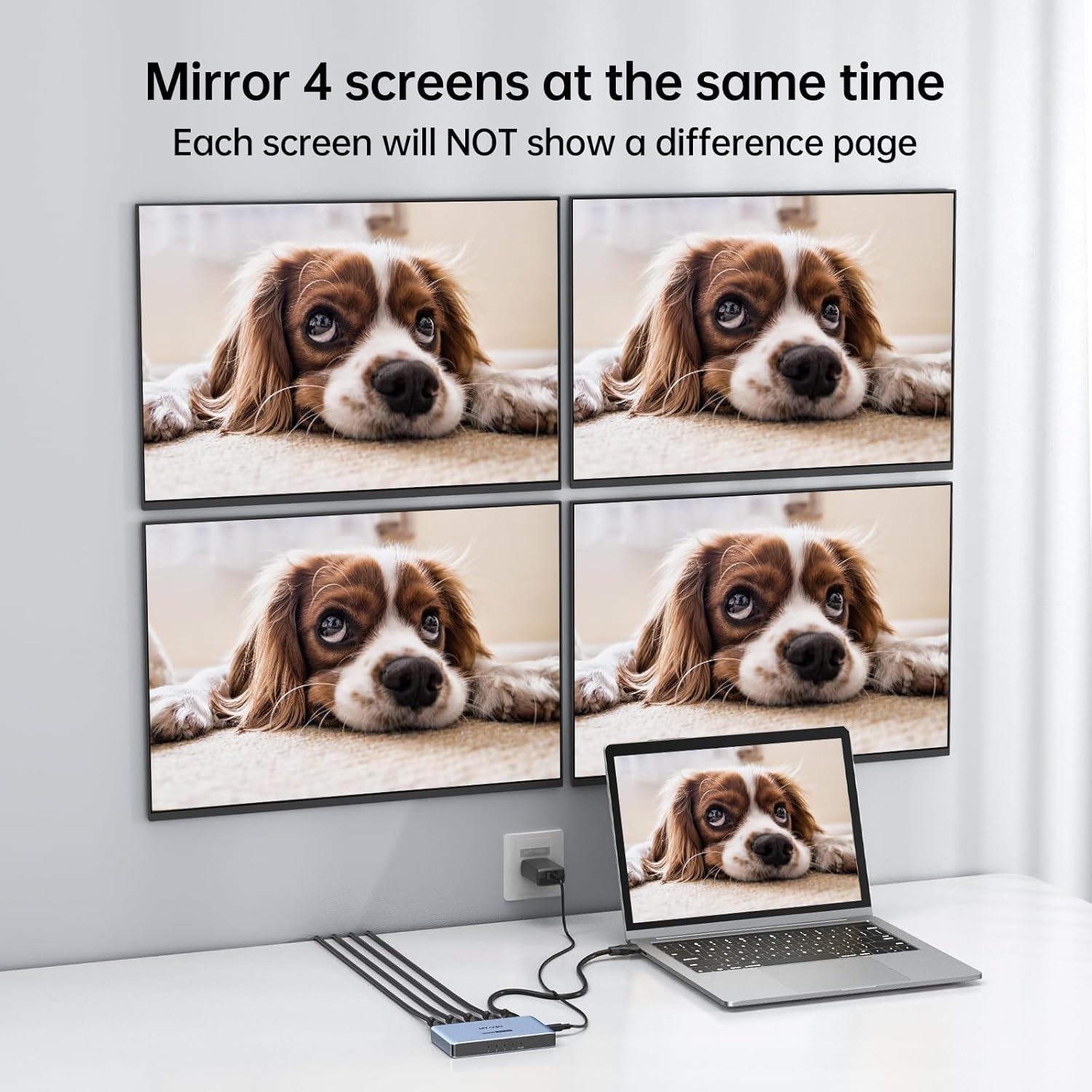 - This 8K HDMI splitter 1 in 4 out can mirror/duplicate one HDMI source on four 8K monitors simultaneously @8K 60Hz or 4K 120Hz.