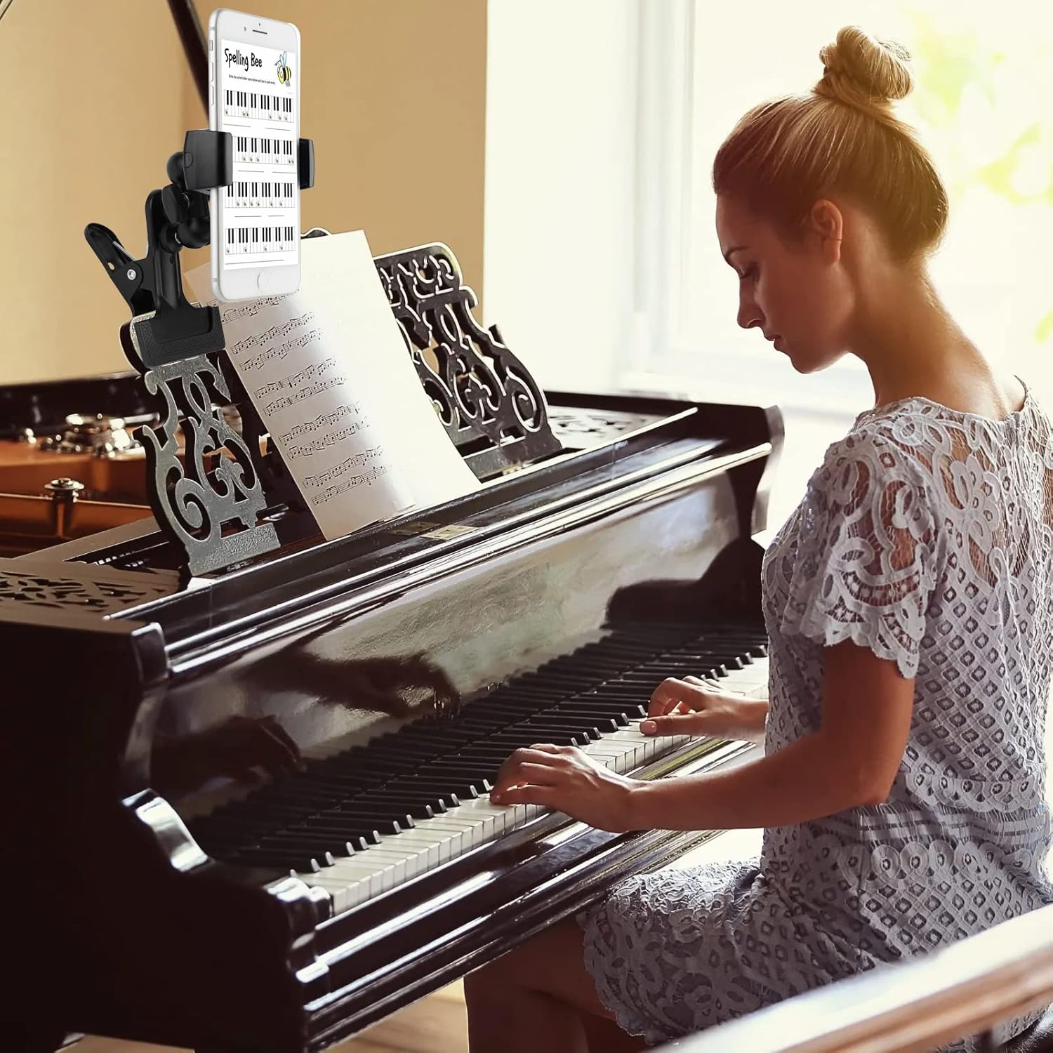 - 【Mount Anywhere】:Phone bracket maximum clamped thickness is 1.96 inch / 5cm,loads weight is 1.43 lbs /0.65kg ,widespread application for door,drawing shelf,table,wooden baffle,metal rack,office desk,railing,glass,guitar head.No any tools to drill holes,install and uninstall is simple.