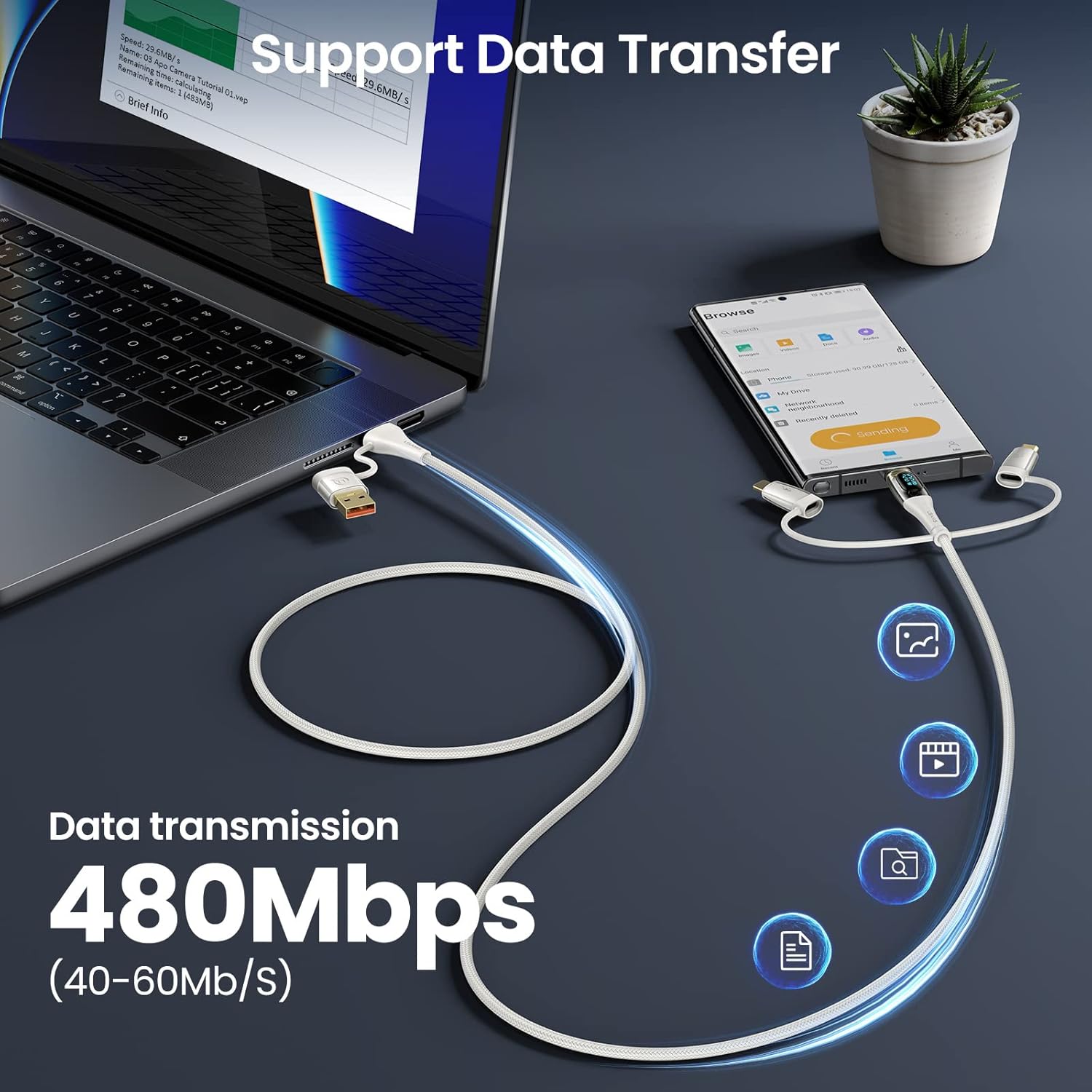 - [LED Power Digital Display & Transparent Design] Fast charger 4 in 1 charging cable features a real-time LED power display that shows your charging status and signifies high-power processes. The transparent shell design allows for a clear display of the precise inner components.