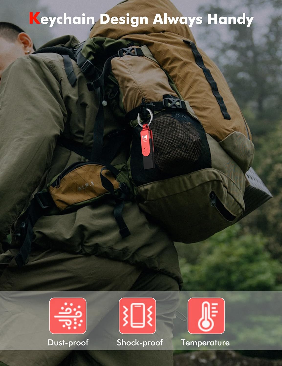 - Never lose your data again: Our sturdy keychain ensures that you'll never misplace your 2in1 type C 3.1 flash drive. Clip it to your backpack, keys, or lanyard and always have your data within reach.