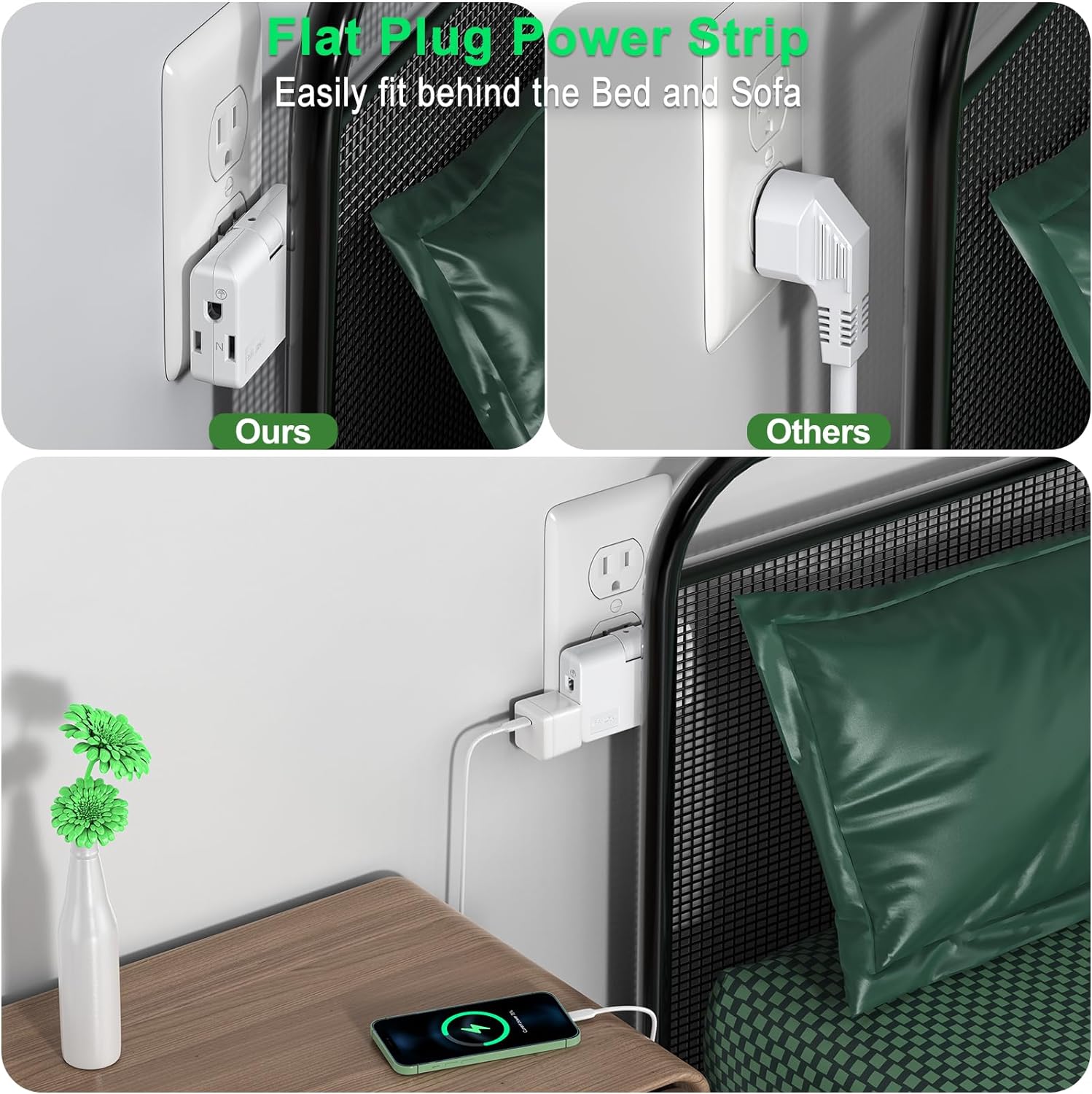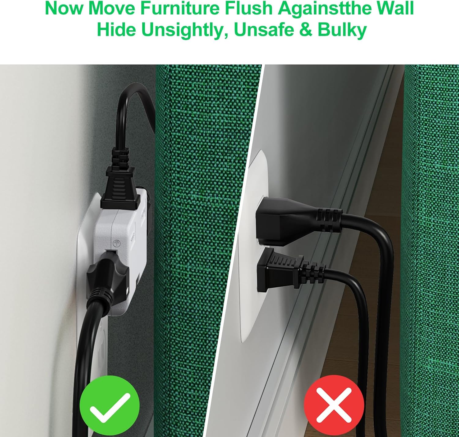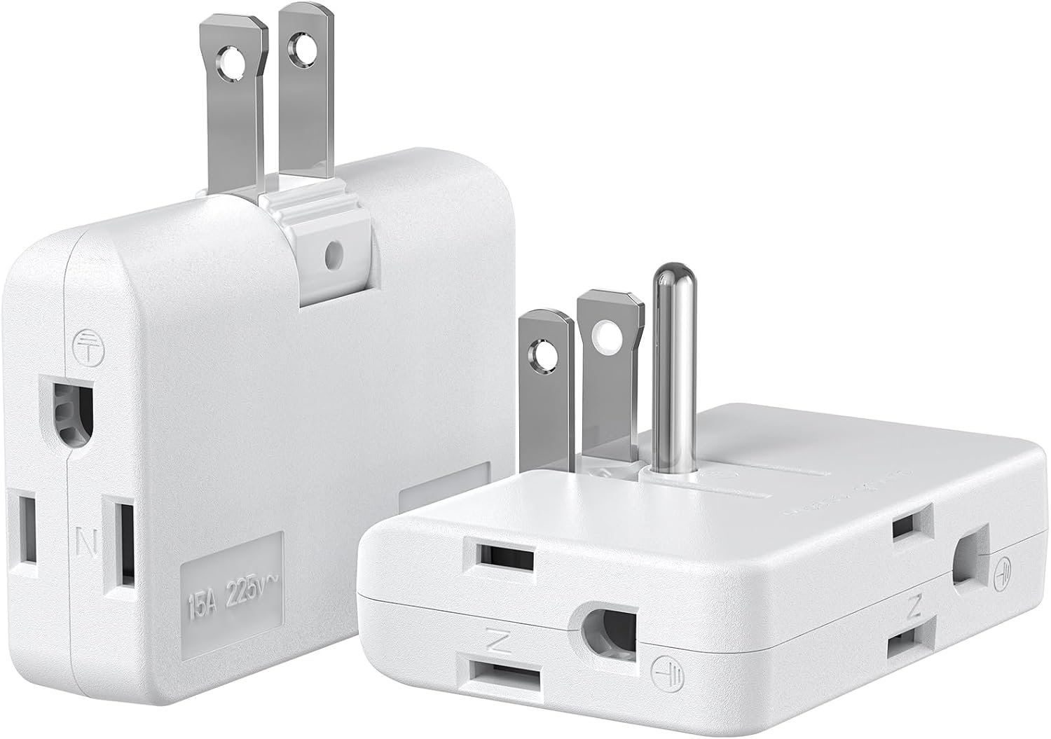 2-Prong/3-Prong Swivel Adapter, Polarized Grounding Converter with Flat Wall Plug, Fireproof 3-Outlet for Home Use (2 Pack)