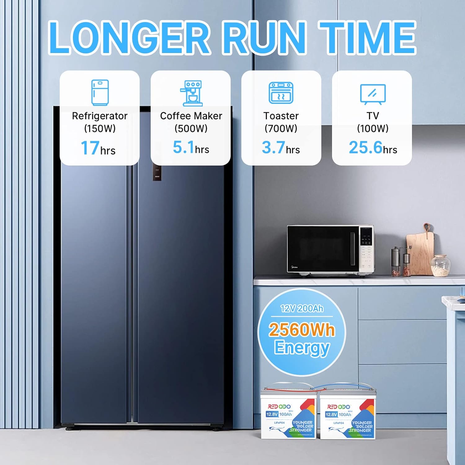 - 【Installation In Any Orientation & Free Up Space】 You can install Redodo 12V 100Ah mini lithium battery for any orientations, even upside down, without any worries about space and limitations. It can also supports up to 4P4S, 8P, 8S for more powerful energy system which can cater to almost all electrical appliances and various scenarios.