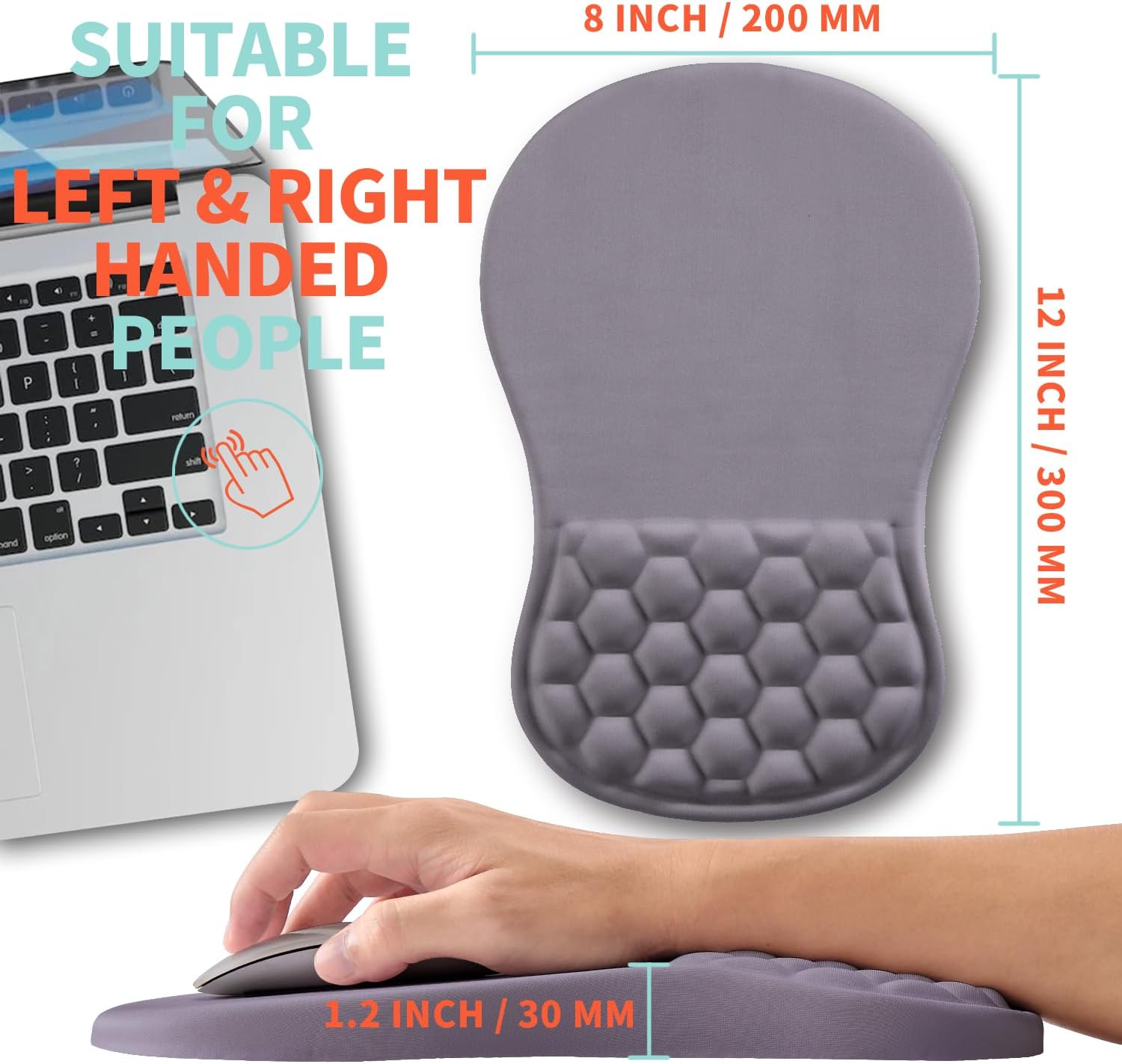 Ergonomic Mouse Pad Wrist Support with Memory Foam Massage Bulge, Carpal Tunnel Pain Relief Mousepad Wrist Rest for Mouse(12x8 inch, Silver Gray Light Purple)