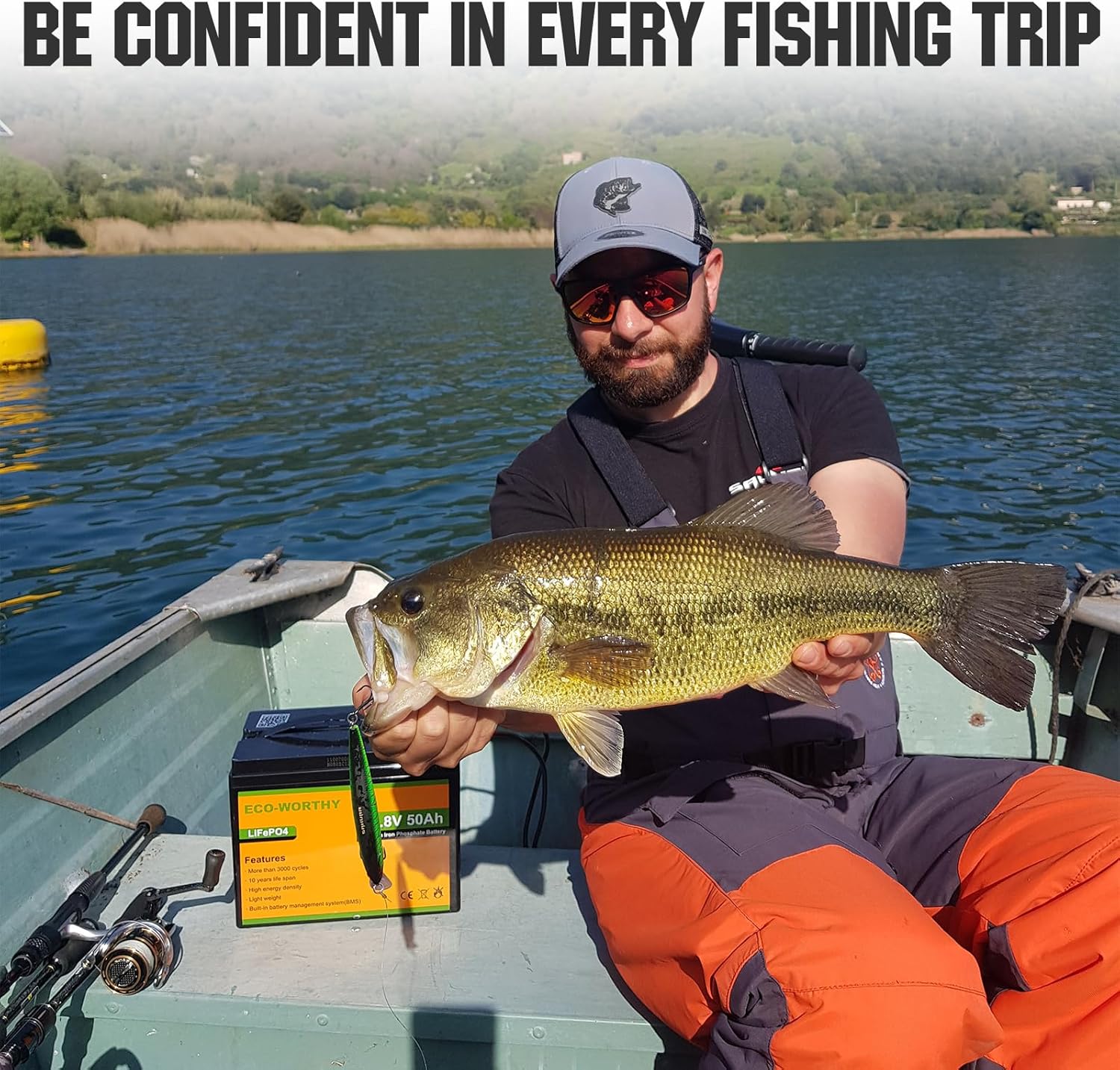 - [For Trolling Motors] The ECO-WORTHY 12V 50Ah LiFePO4 battery is specifically designed for 30lb-50lb trolling motors, making it ideal for brands like Minn Kota, Newport Vessel, and PEXMOR. With 640Wh of energy, it provides reliable and long-lasting power. Compared to traditional lead-acid batteries, they offer a greater depth of discharge (DOD), allowing for continuous operation of an 80W load for 8 hours.