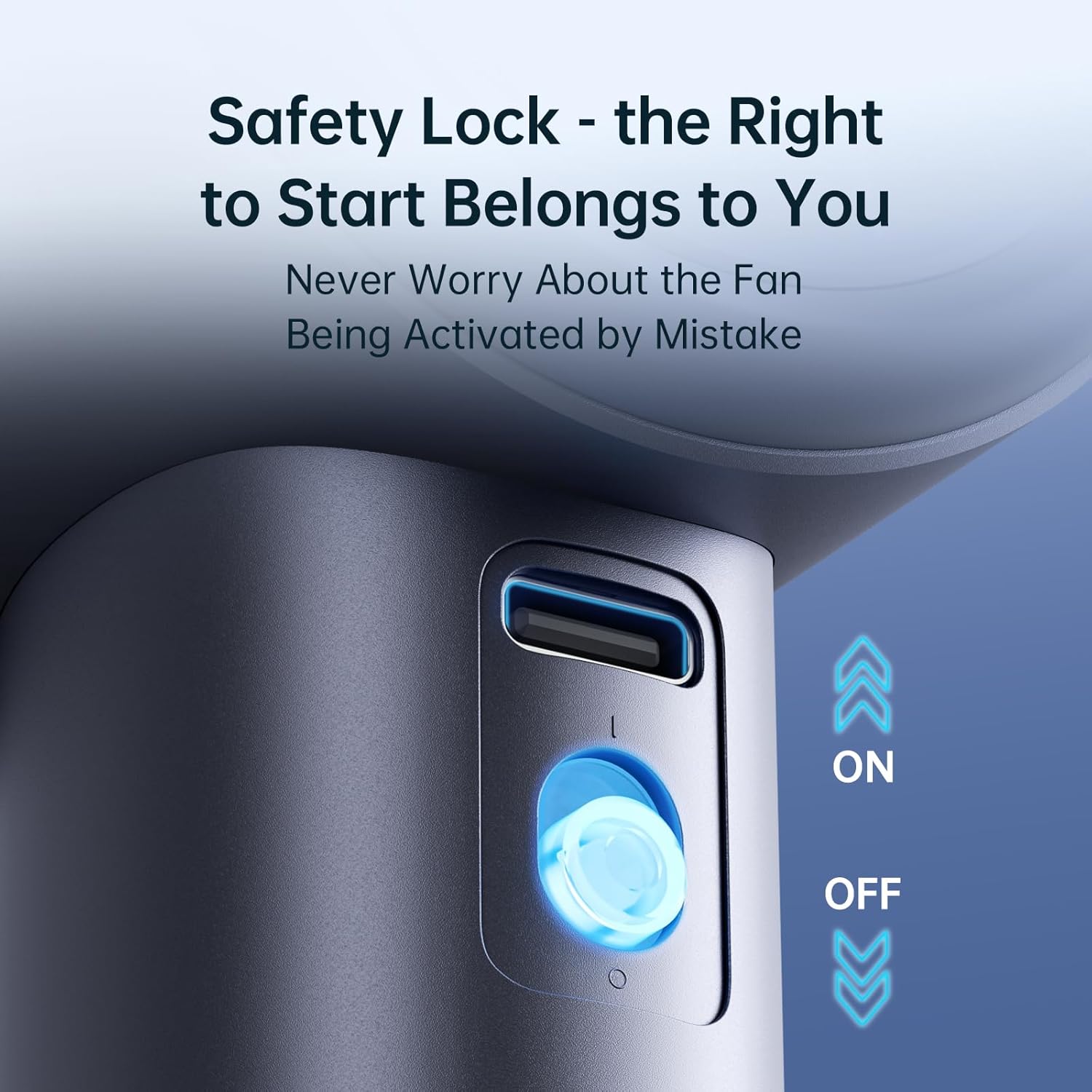 - Digital Display - Power Reminder: This portable fan for travel is equipped with a high-definition digital display screen, which can show the current wind speed and remaining battery power, so you no longer need to worry about the remaining power of the fan. When the battery of this mini fan is low, you can arrange for charging in advance, ensuring a cool companion on every trip