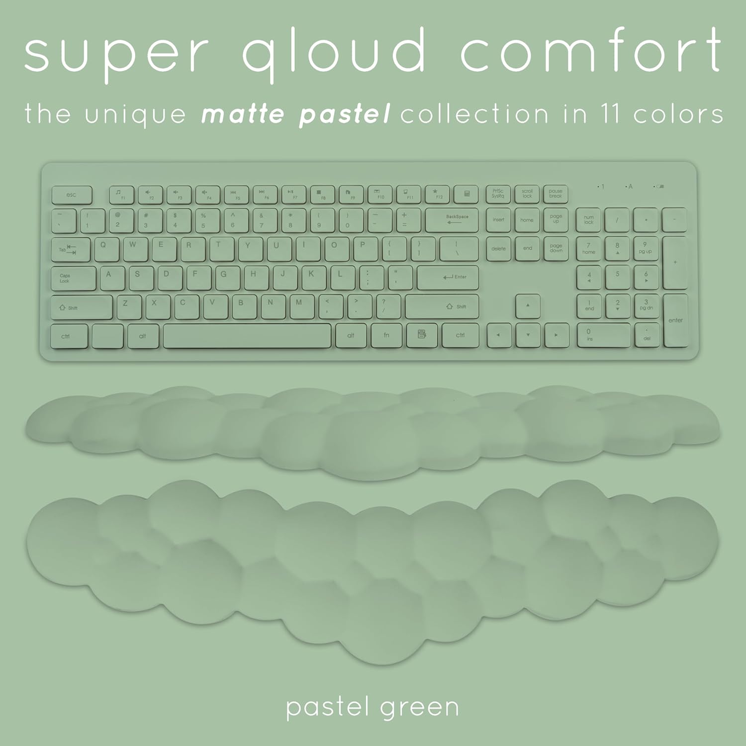 Qloud Cloud Wrist Rest Keyboard Wrist Rest for Computer Keyboard Pad, Cloud Keyboard Wrist Rest, Wrist Pad for Keyboard, Memory Foam, Non Slip Base, Comes with Mouse Pad - Pastel Green