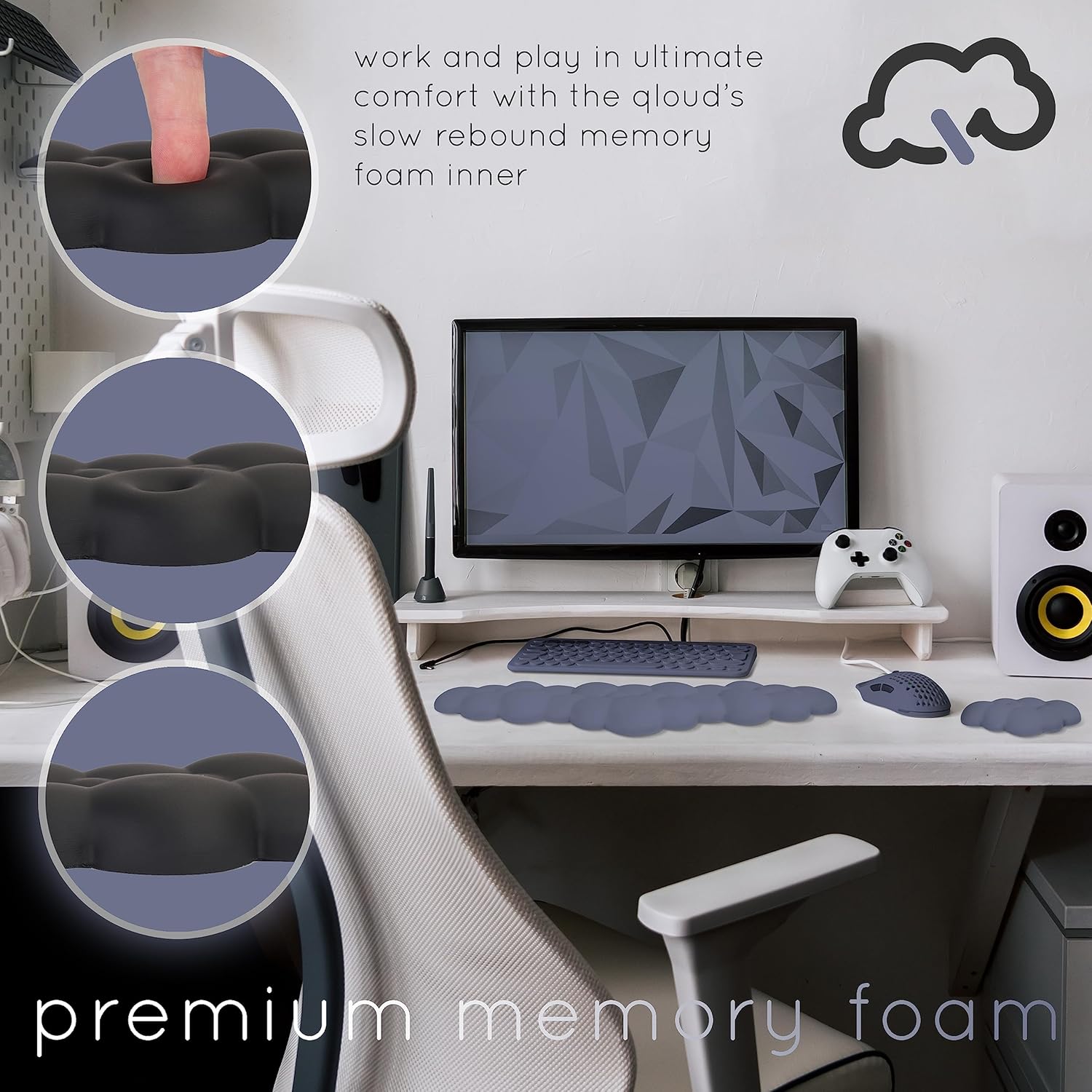 Qloud Cloud Wrist Rest Keyboard Wrist Rest for Computer Keyboard Pad, Cloud Keyboard Wrist Rest, Wrist Pad for Keyboard, Memory Foam, Non Slip Base, Comes with Mouse Pad - Slate Blue
