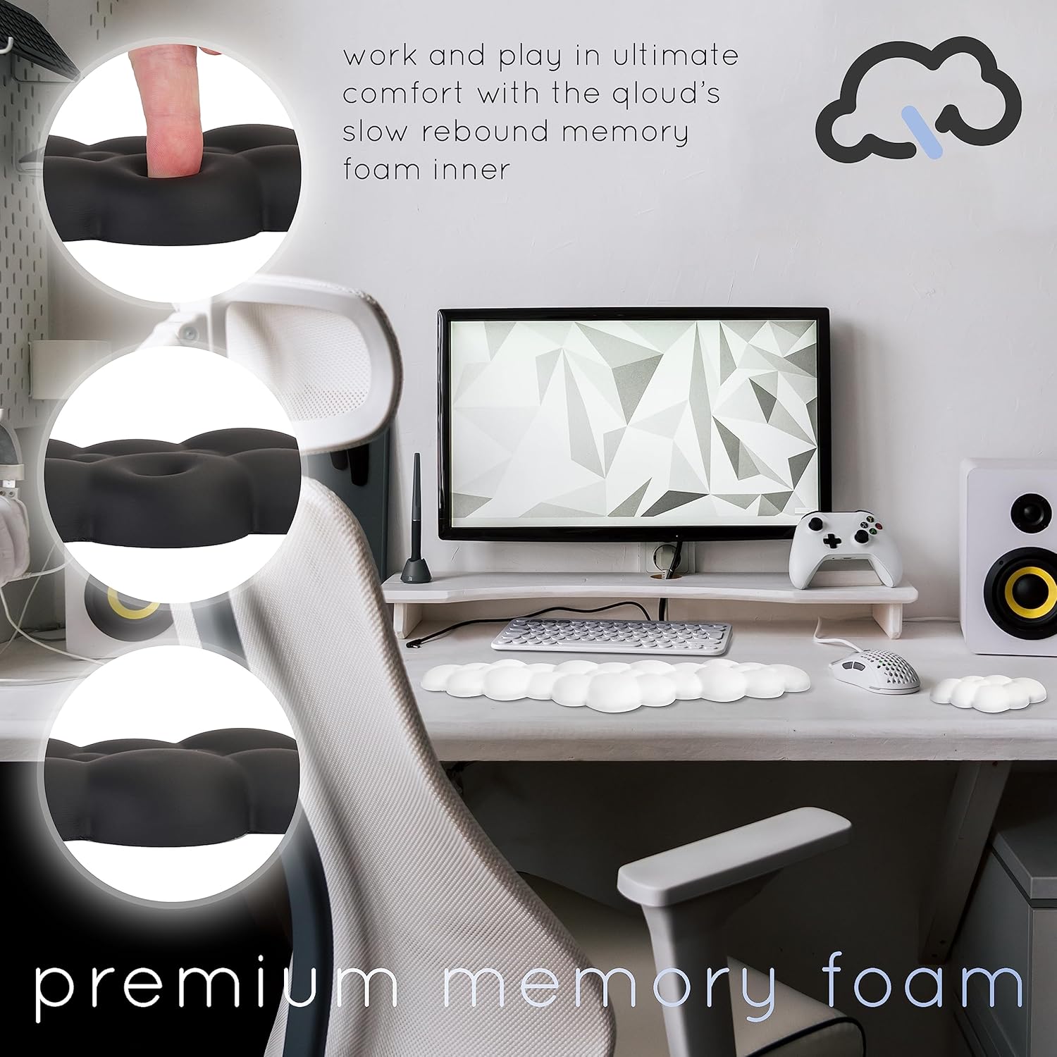 Qloud Cloud Wrist Rest Keyboard Wrist Rest for Computer Keyboard Pad, Cloud Keyboard Wrist Rest, Wrist Pad for Keyboard, Memory Foam, Non Slip Base, Comes with Mouse Pad - White