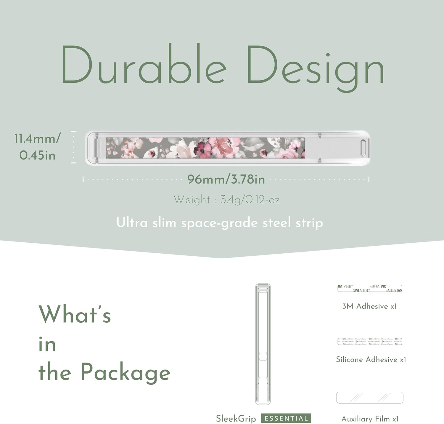 - STRONG ADHESIVE: Sticky back is high quality super strong 3M tape. Special adhesives are also provided for glass or silicone surfaces. Just stick SleekGrip to the cell phone back or phone case. Works with iPhone 16 15 14 13 12 plus pro max Android and more