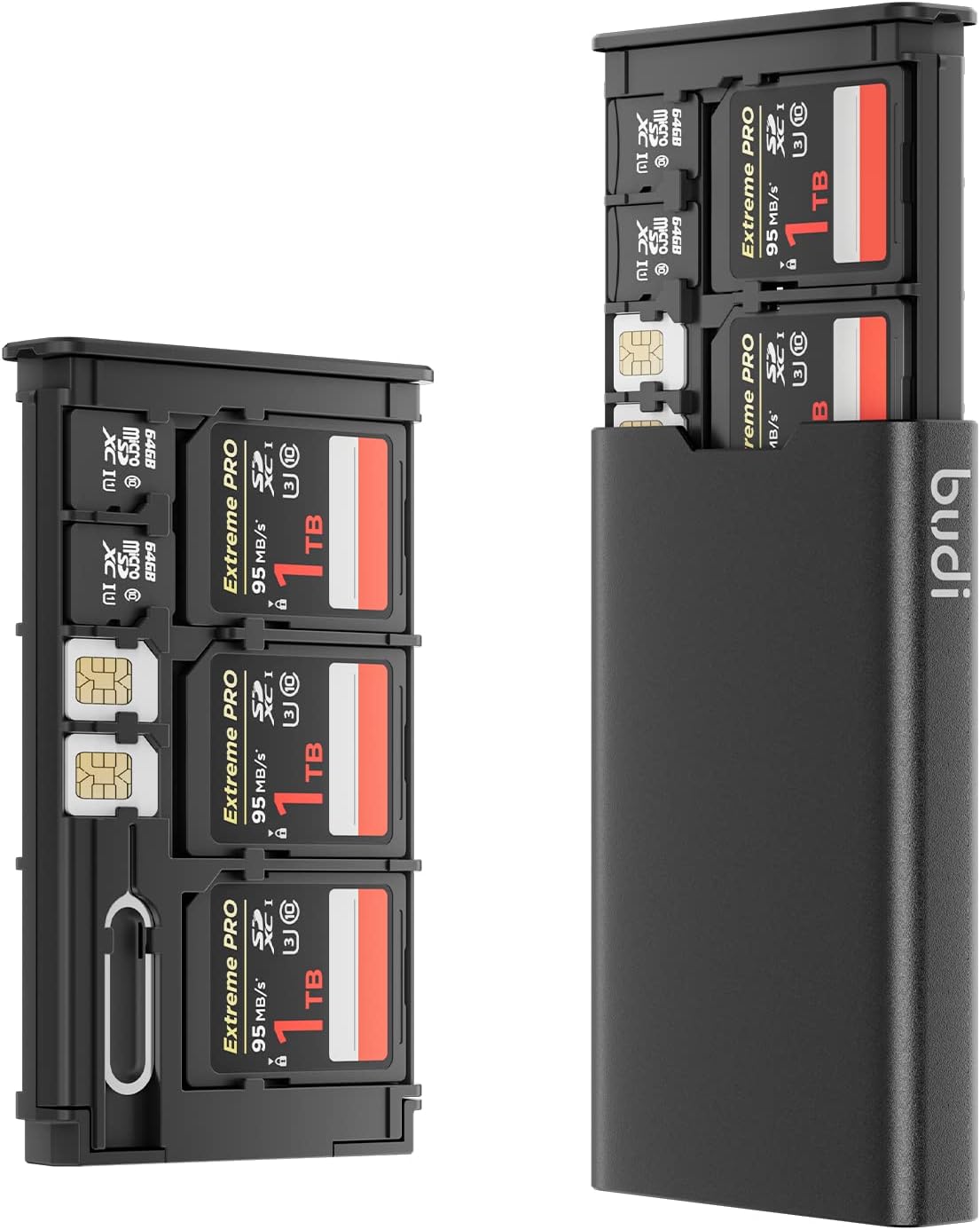 BUDI Pop-up Design Memory Card Case Crush & Shockproof Memory Card Wallet for Micro SD SDXC SDHC TF Cards and 6 SD Cards/Micro SDHC/Micro SDXC TF Card Holder Organizer,Case Storage (Mini case)