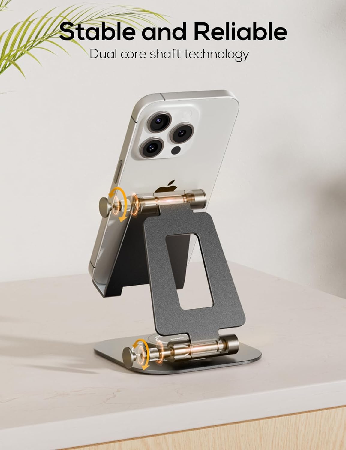 - 360° Rotatable Freedom: This phone stand offers a full 360° rotation, allowing you to adjust the viewing angle to your preference effortlessly. Enjoy hands-free comfort whether you're watching videos, video calling, or sharing your screen.